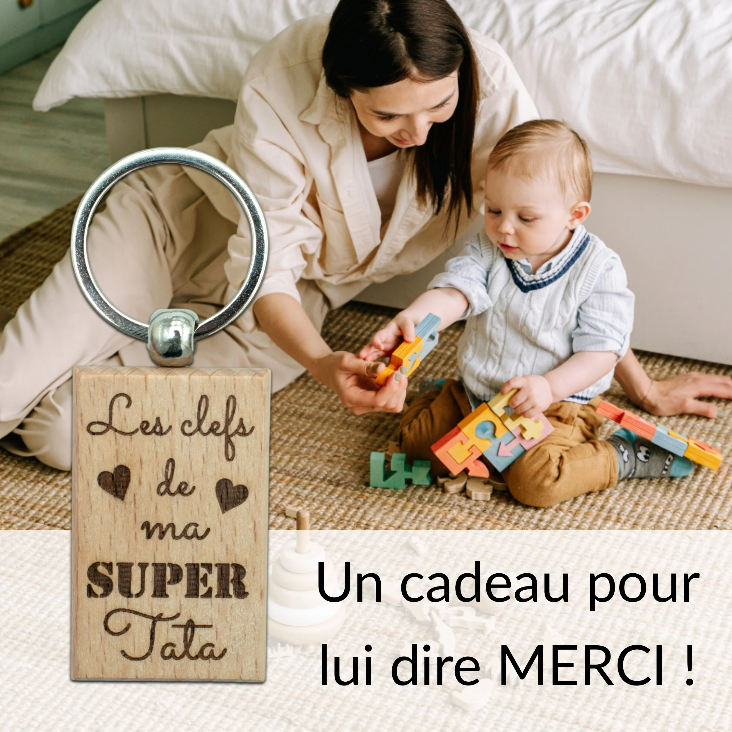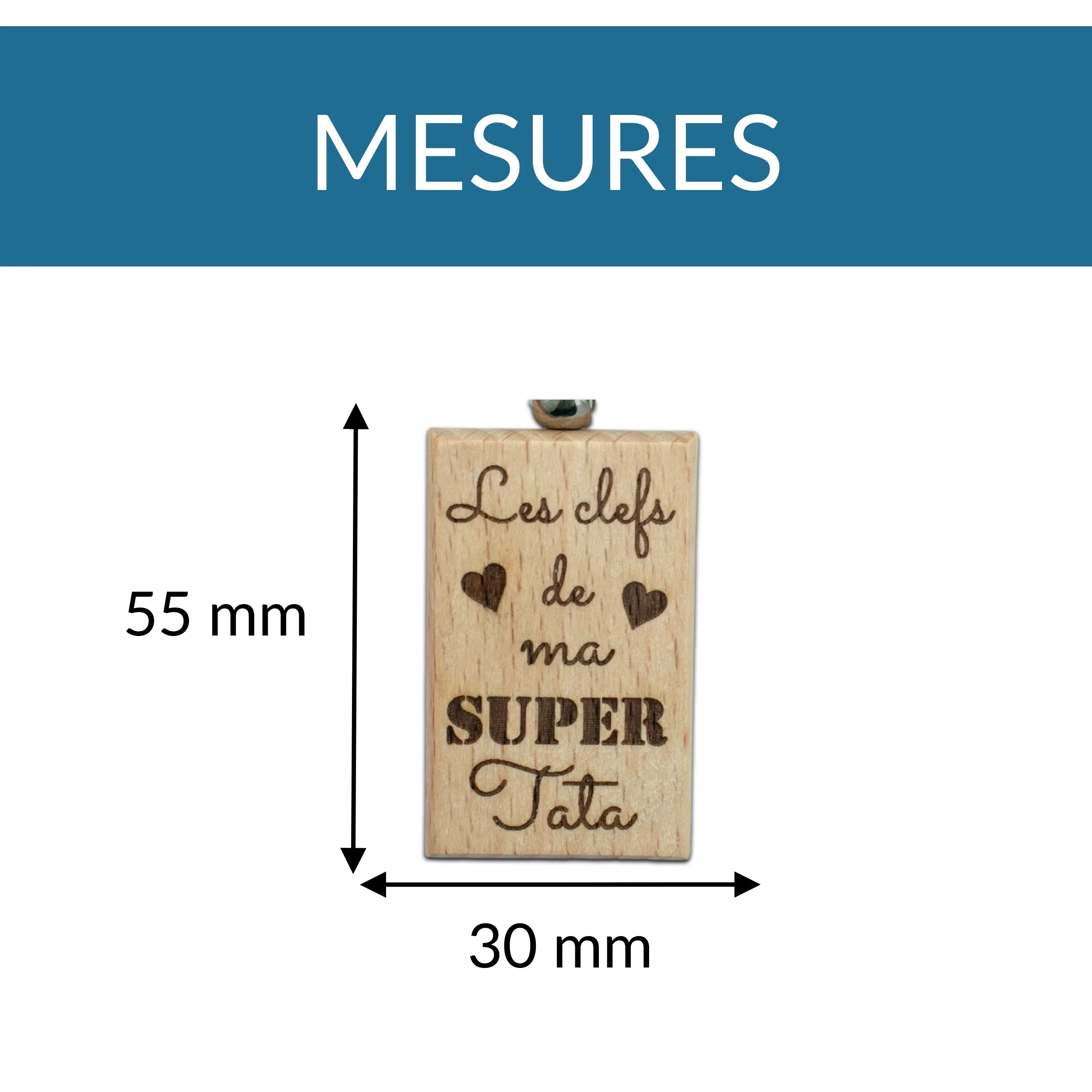 PORTE-CLEFS RECTANGLE EN BOIS – TATA – LES CLEFS
