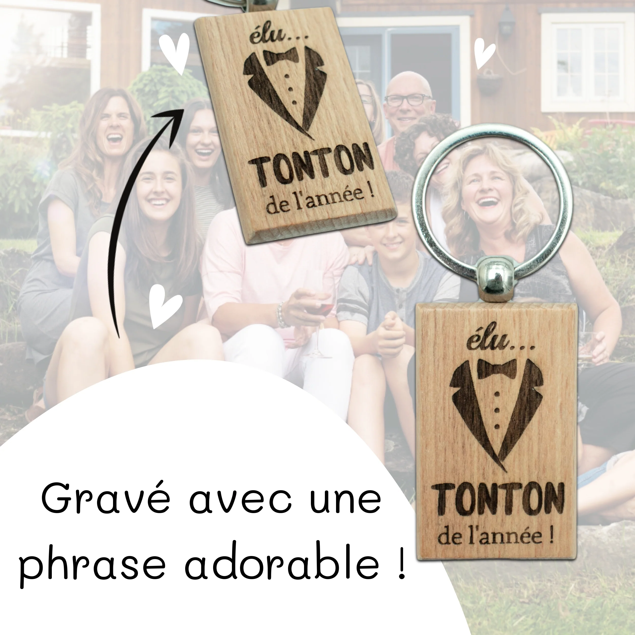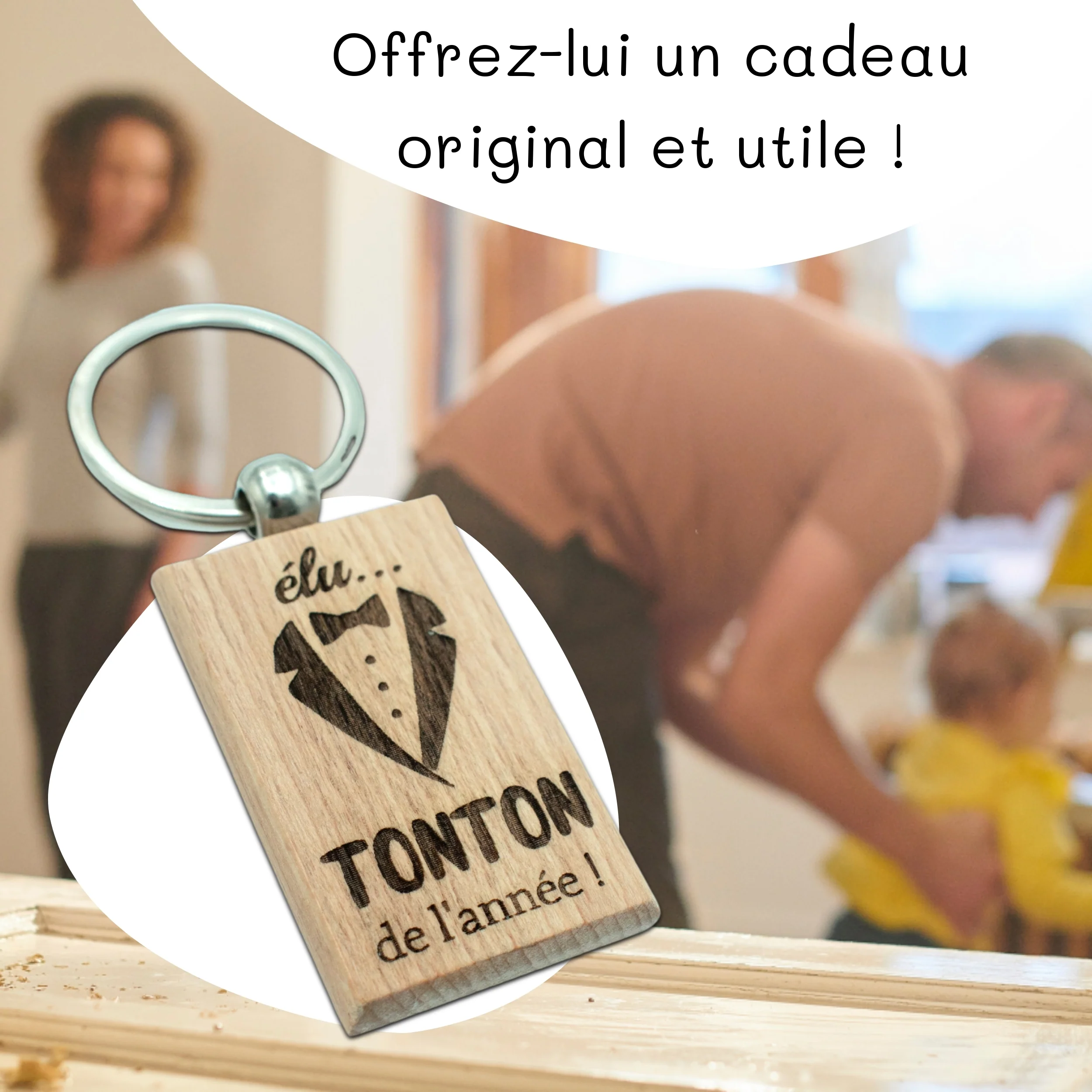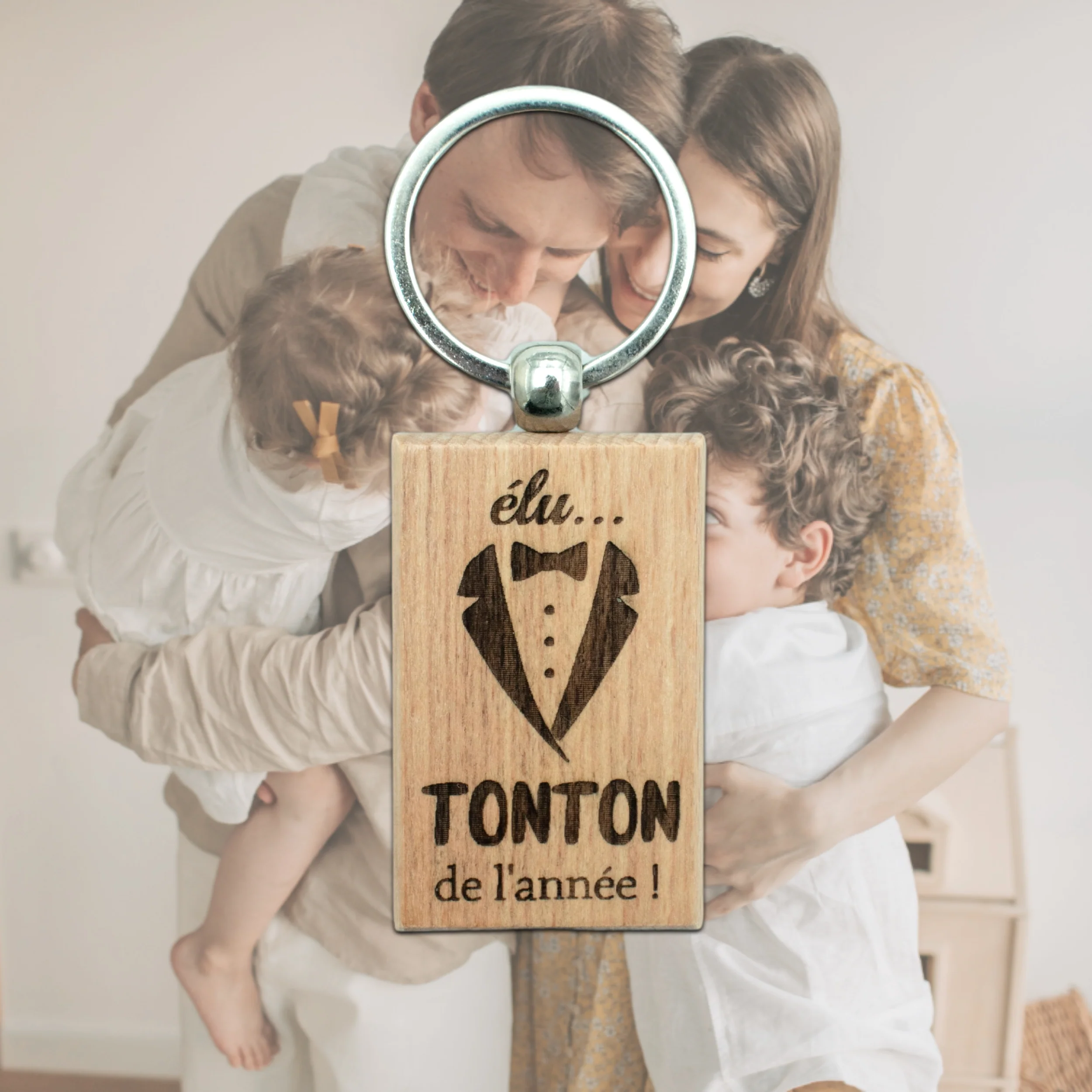 PORTE-CLEFS RECTANGLE EN BOIS – TONTON – ELU