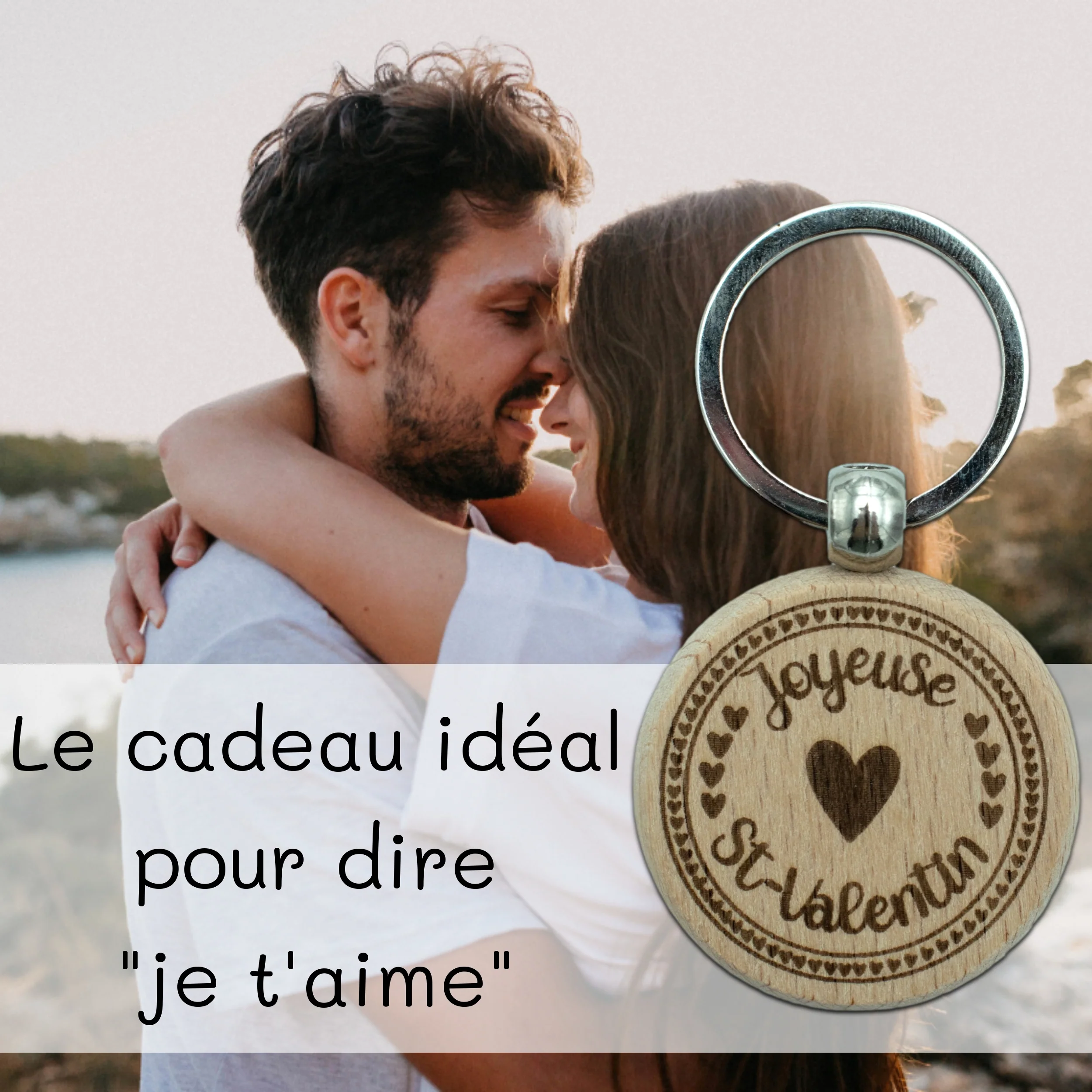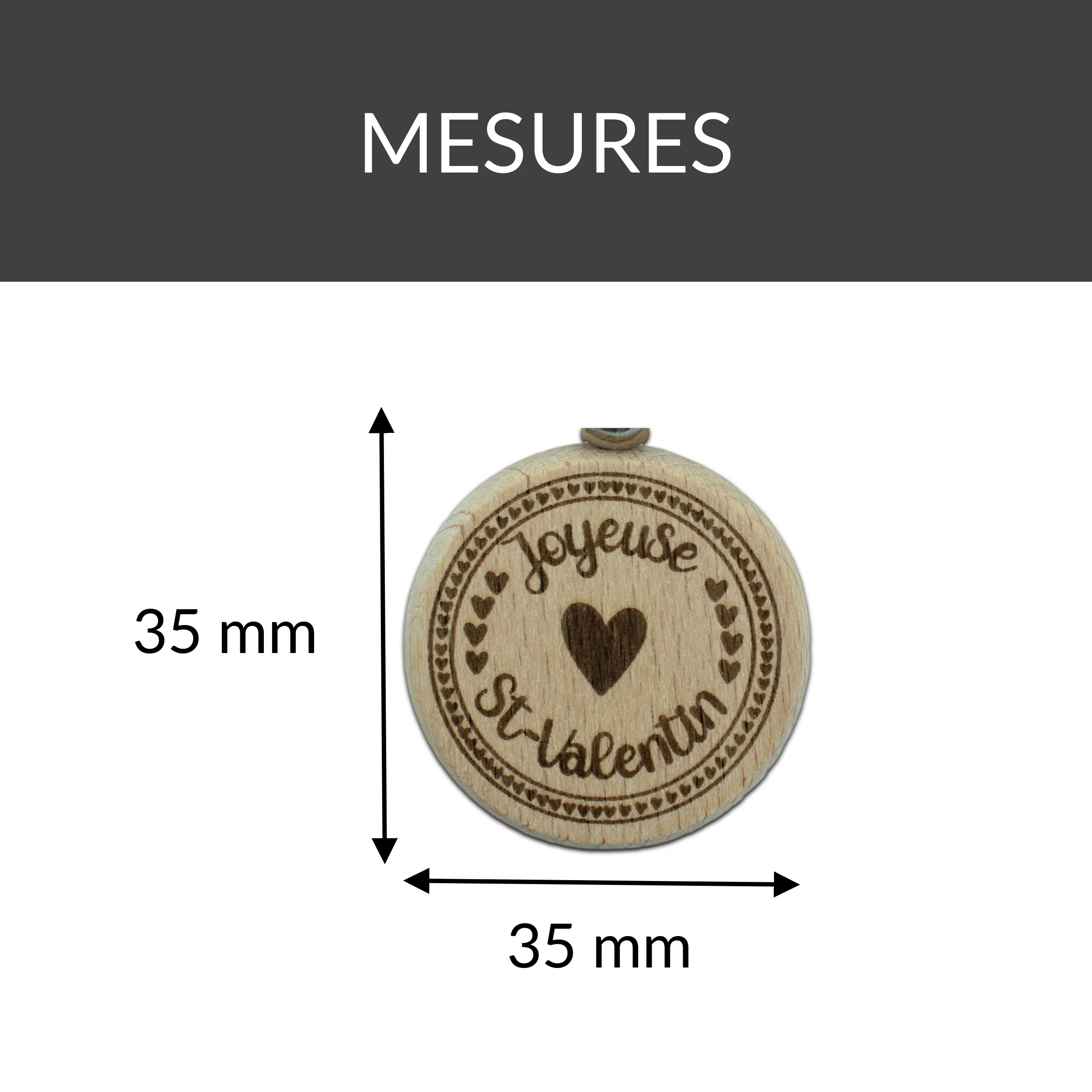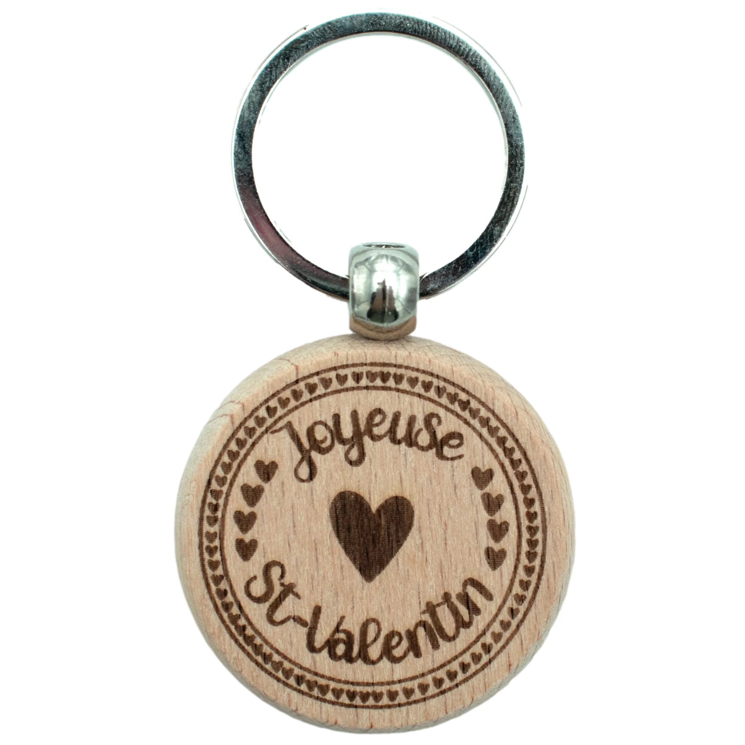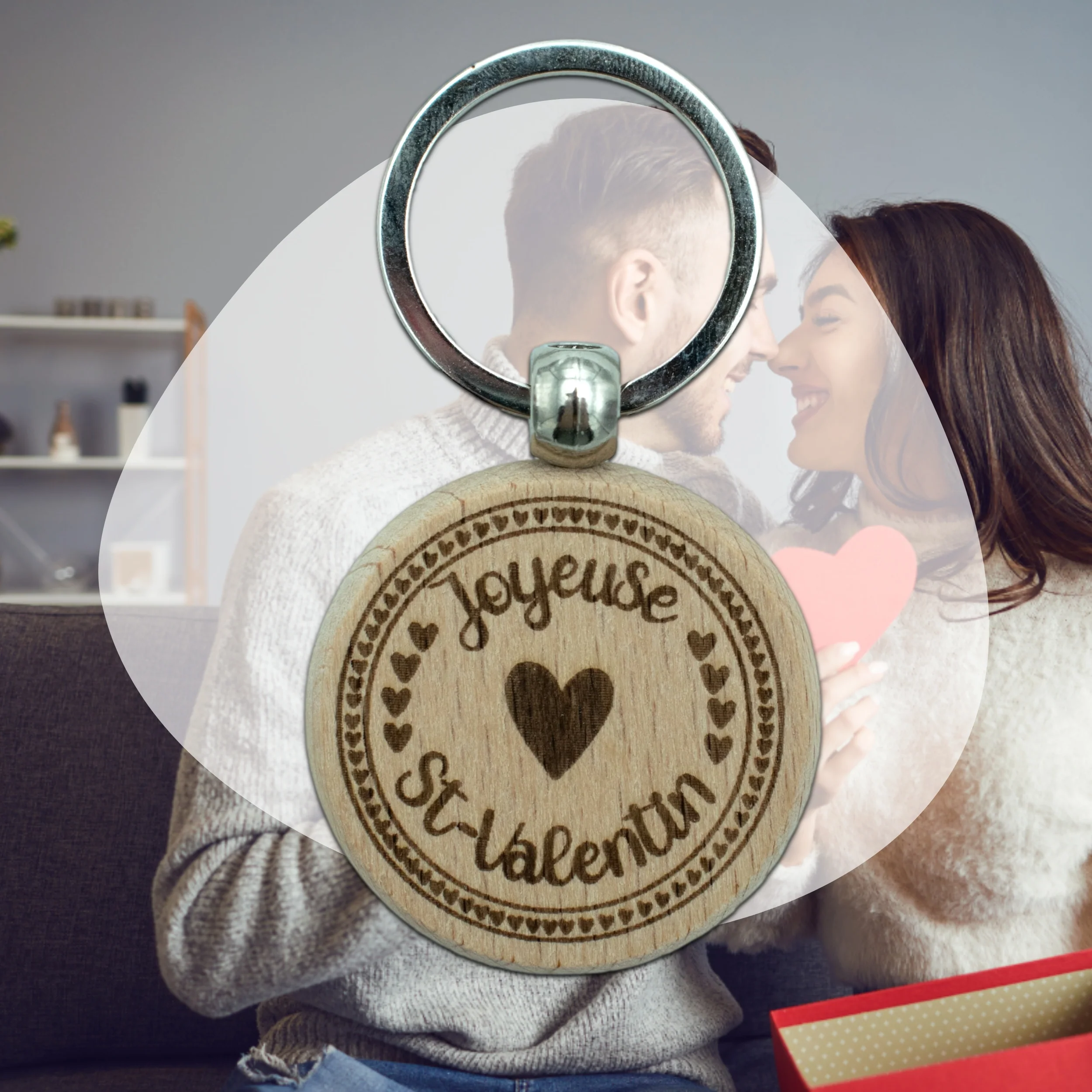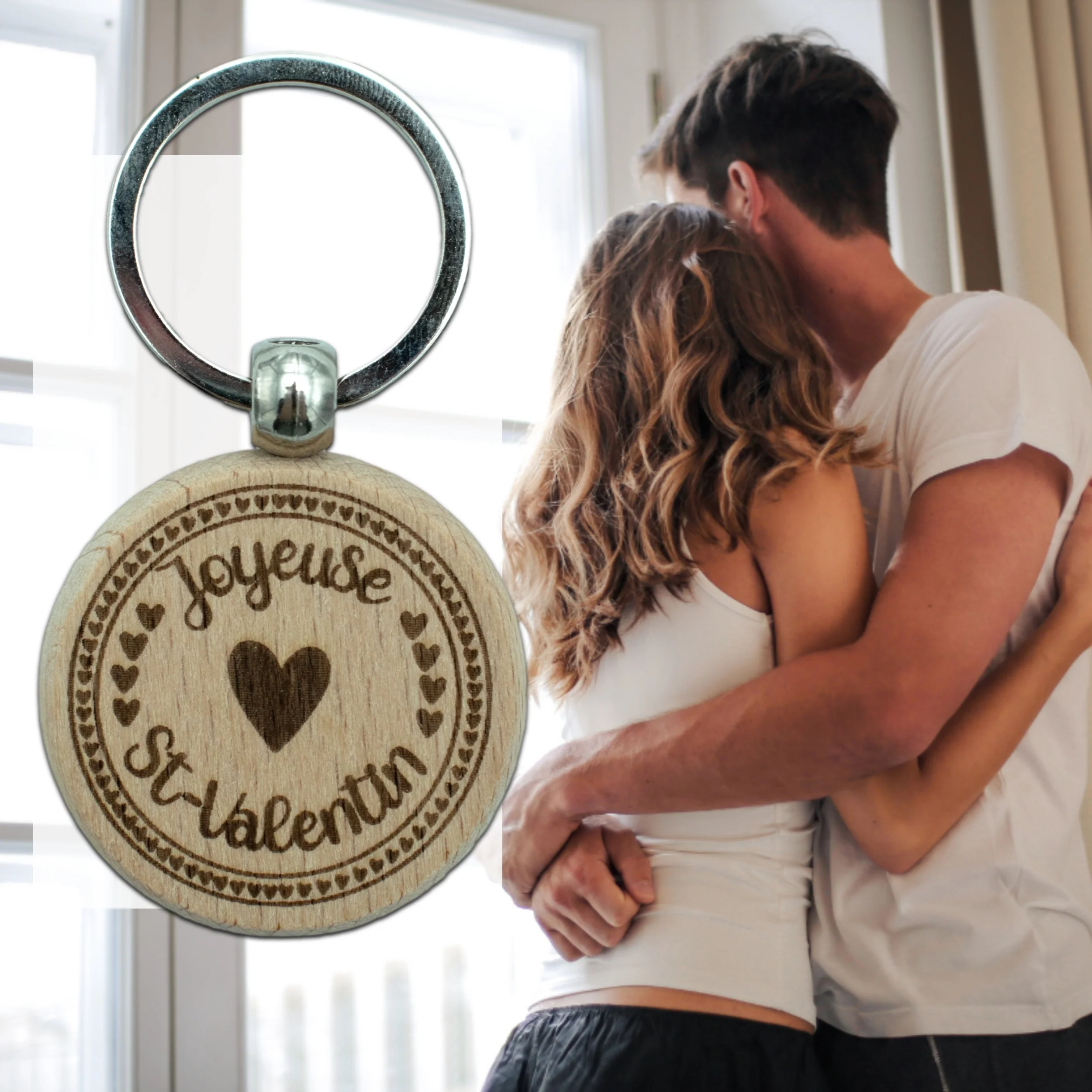 PORTE-CLEFS ROND EN BOIS – AMOUR – JOYEUSE SAINT-VALENTIN