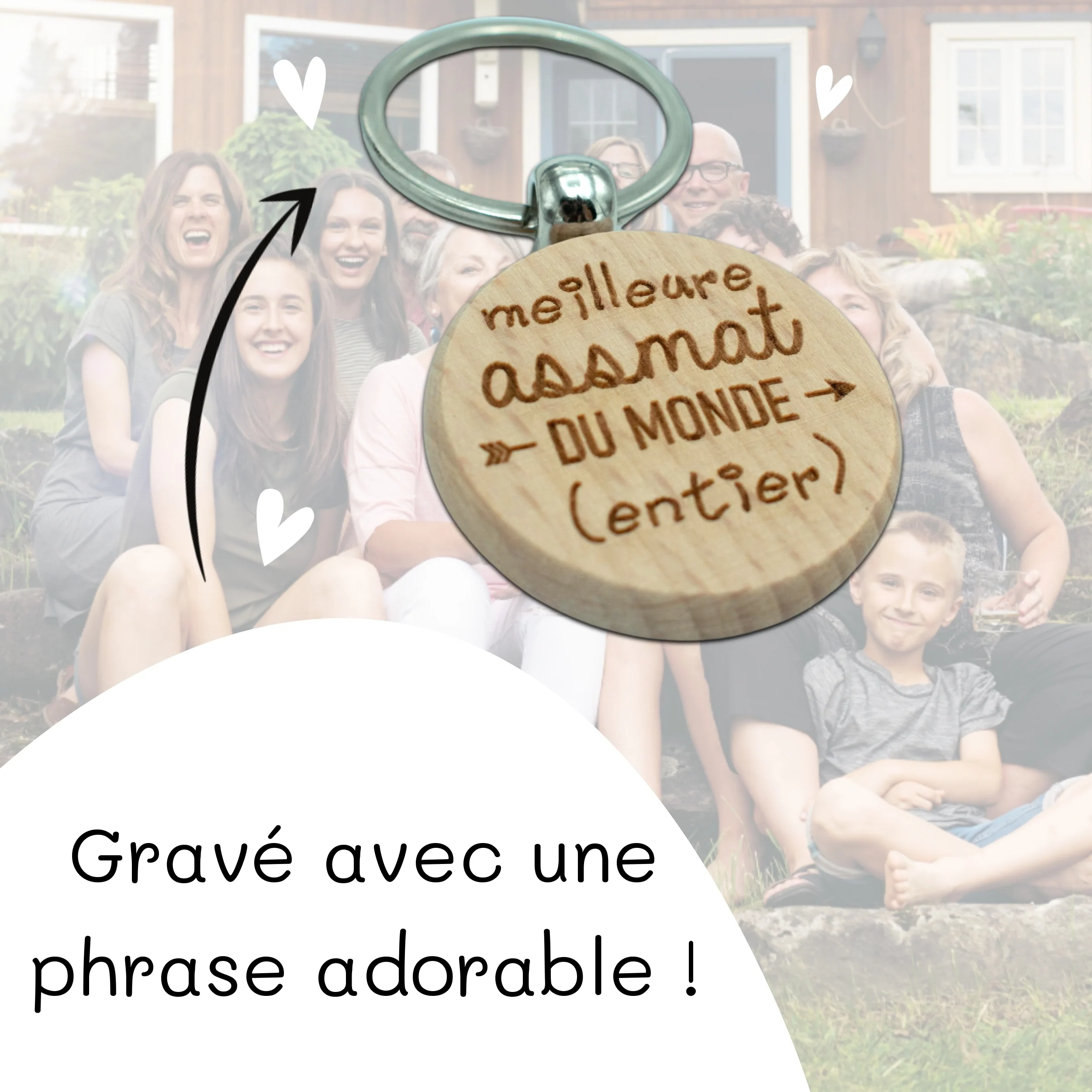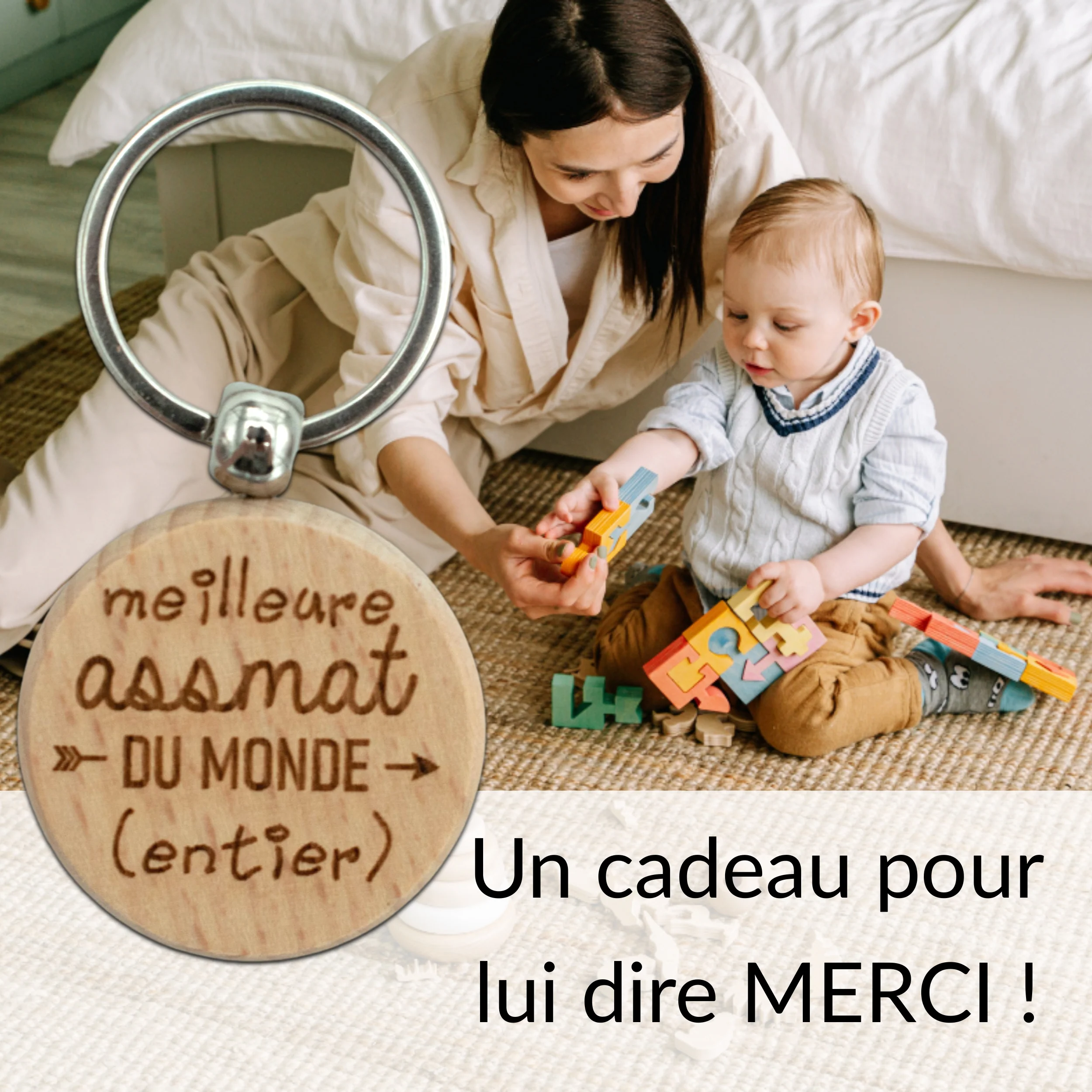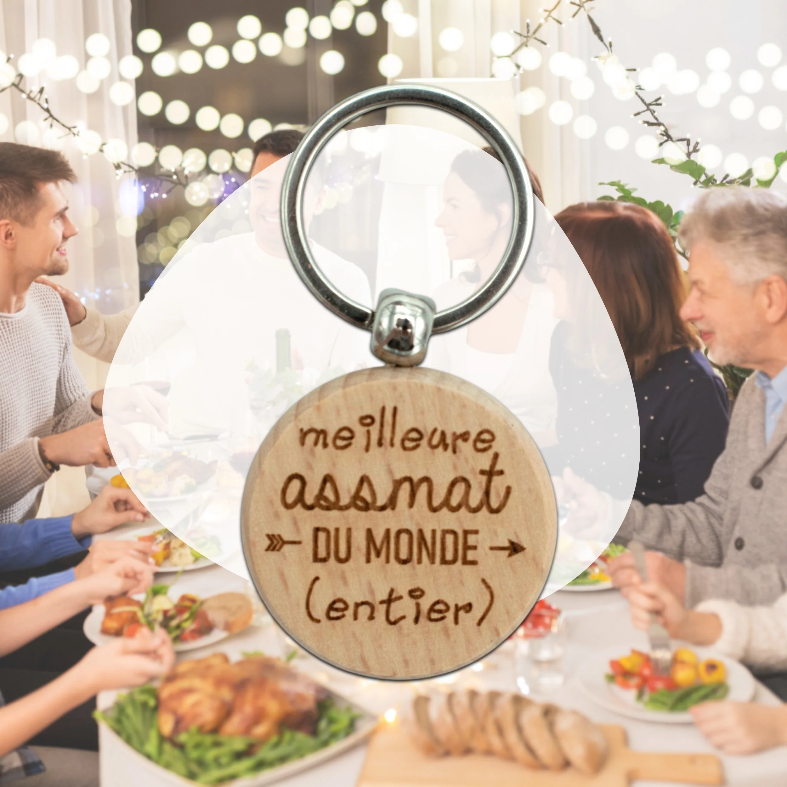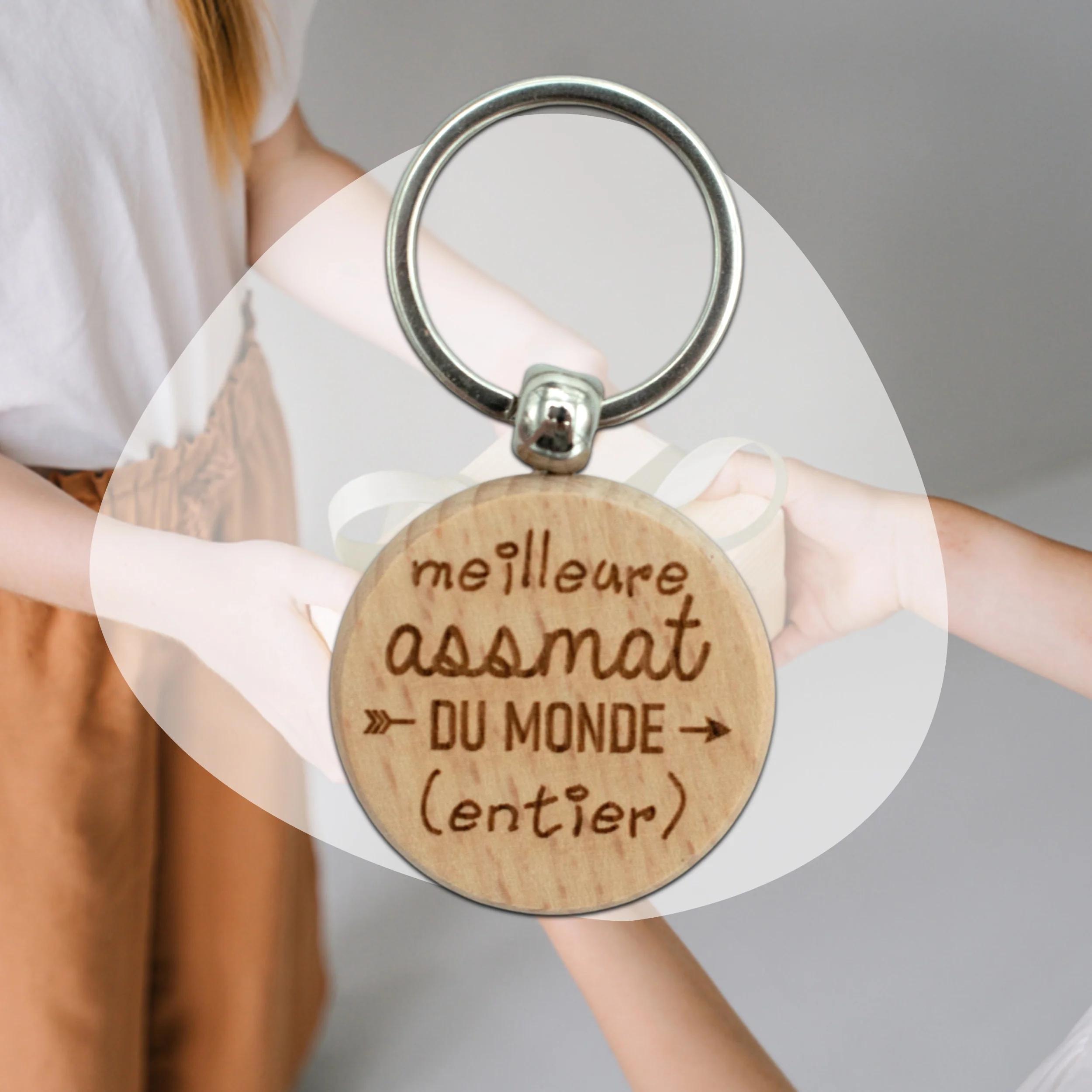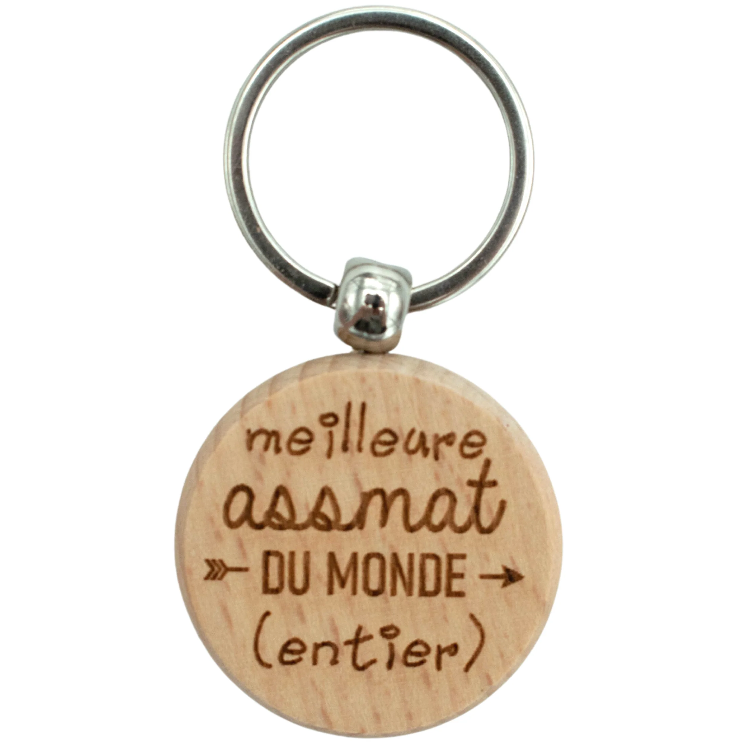 Porte-clefs rond en bois – assmat – meilleure du monde entier