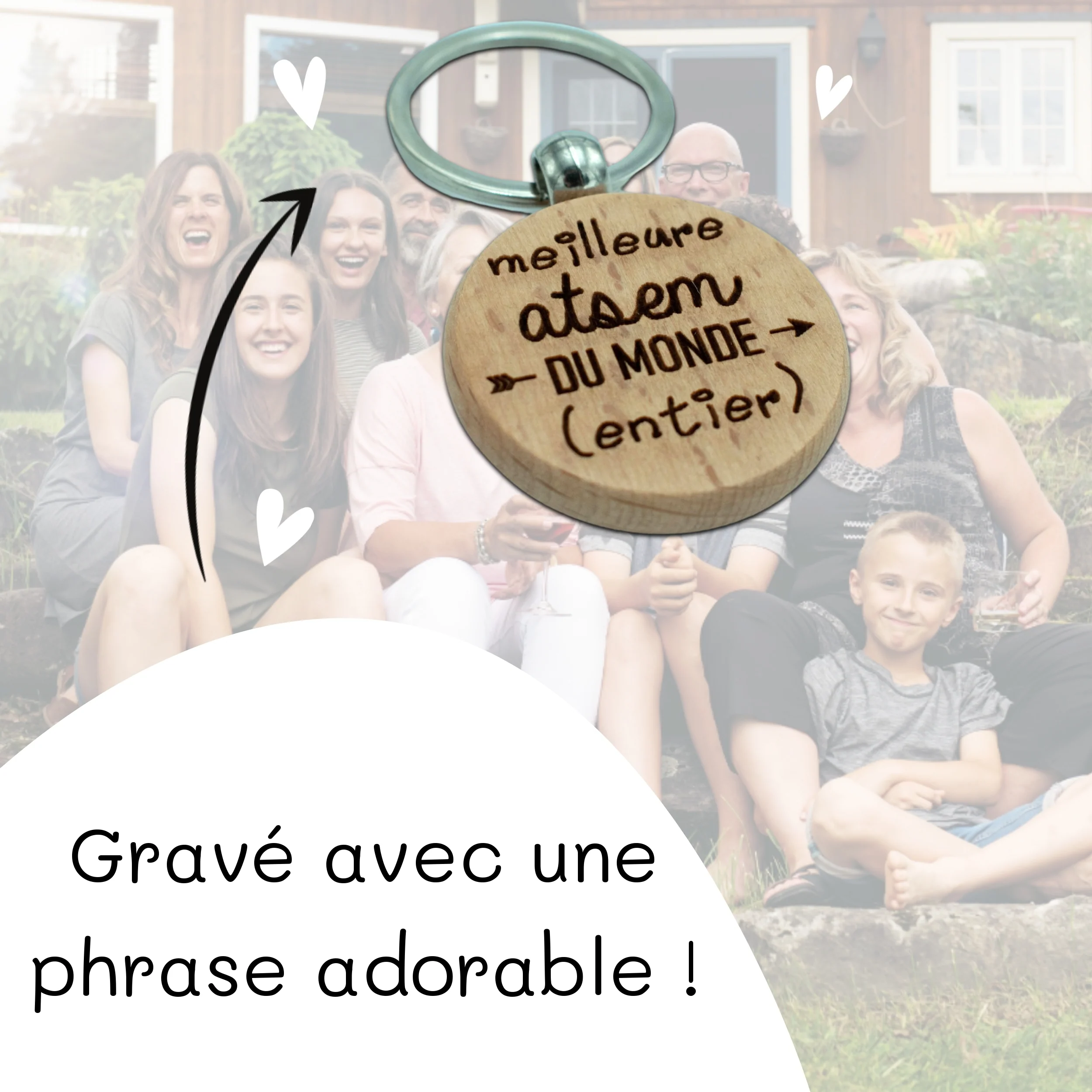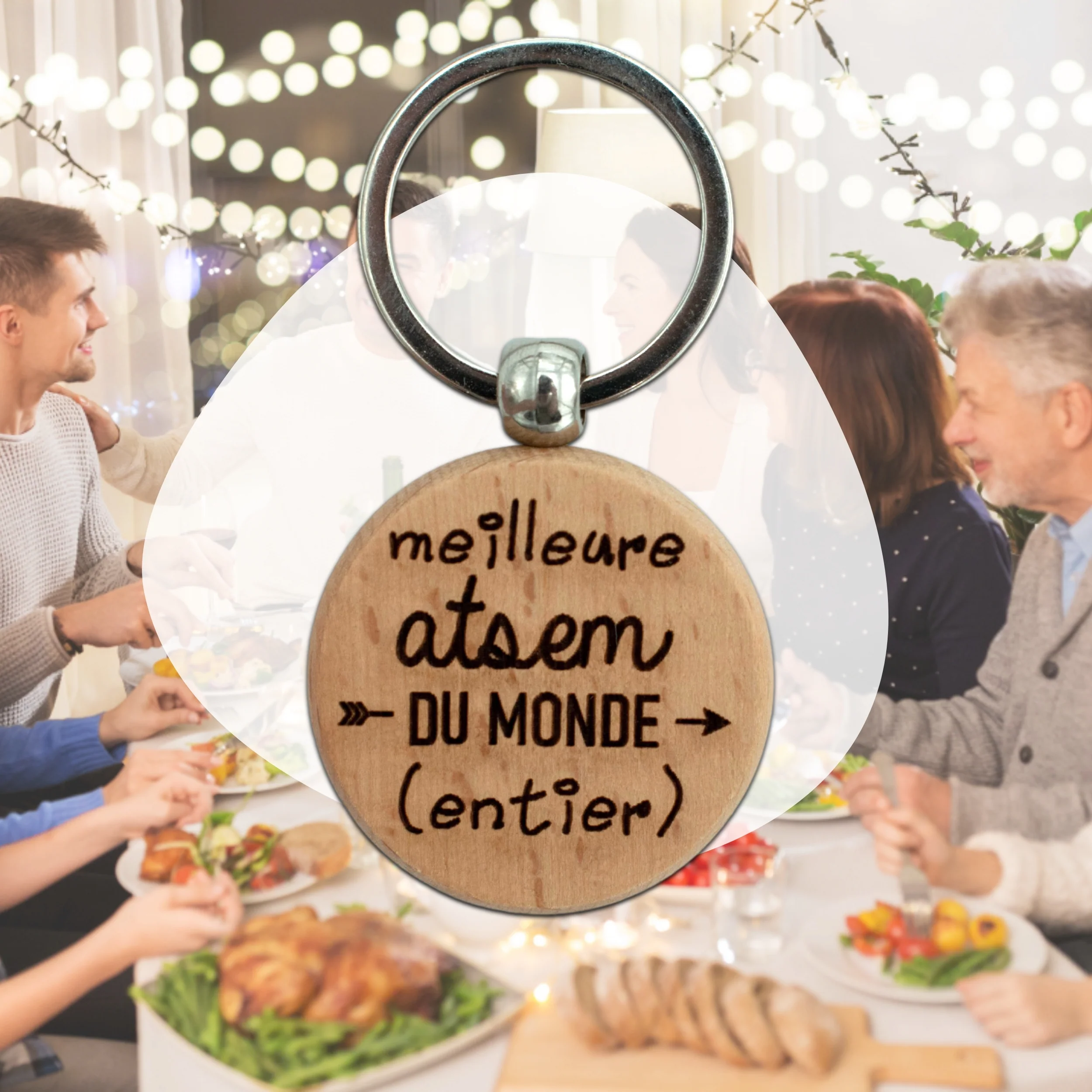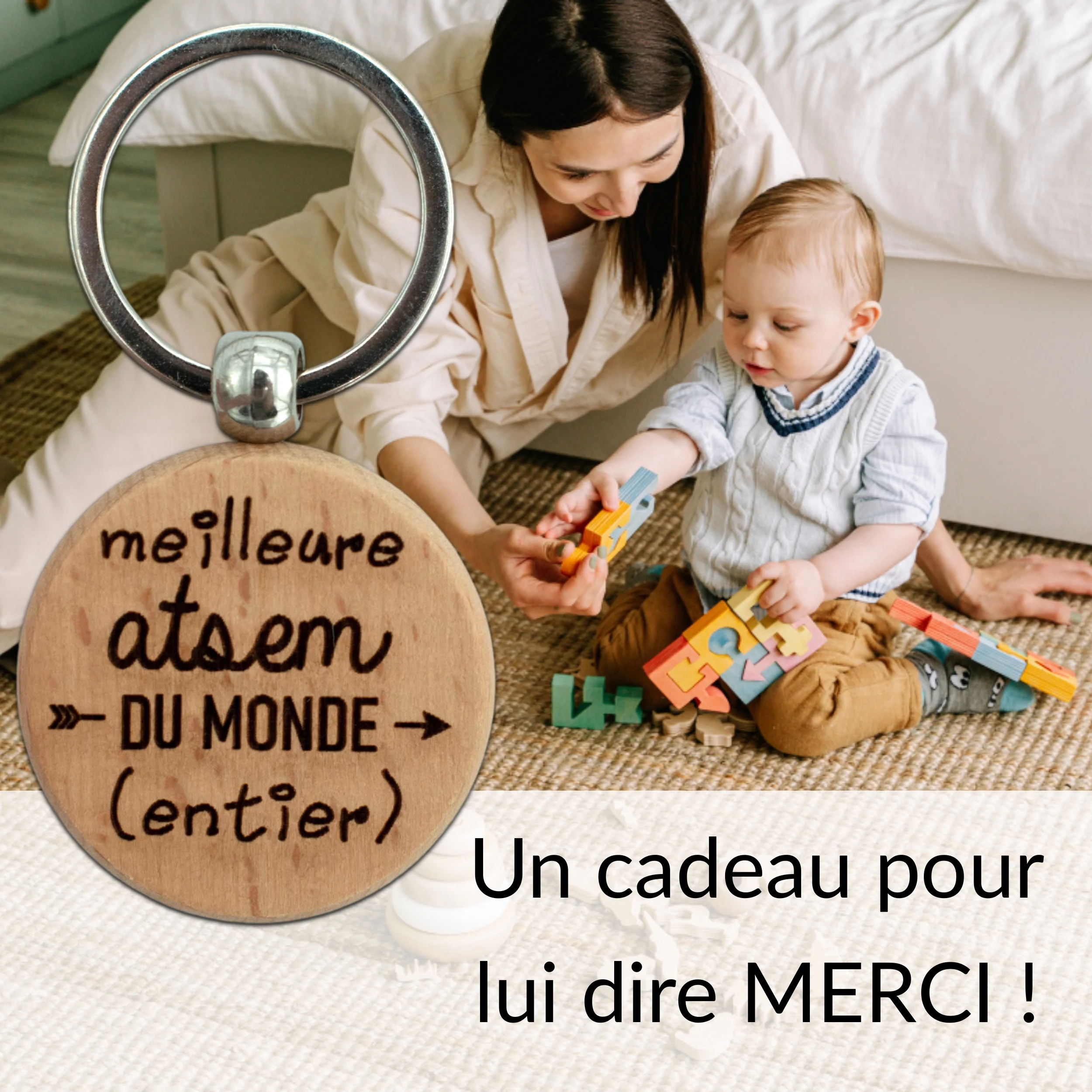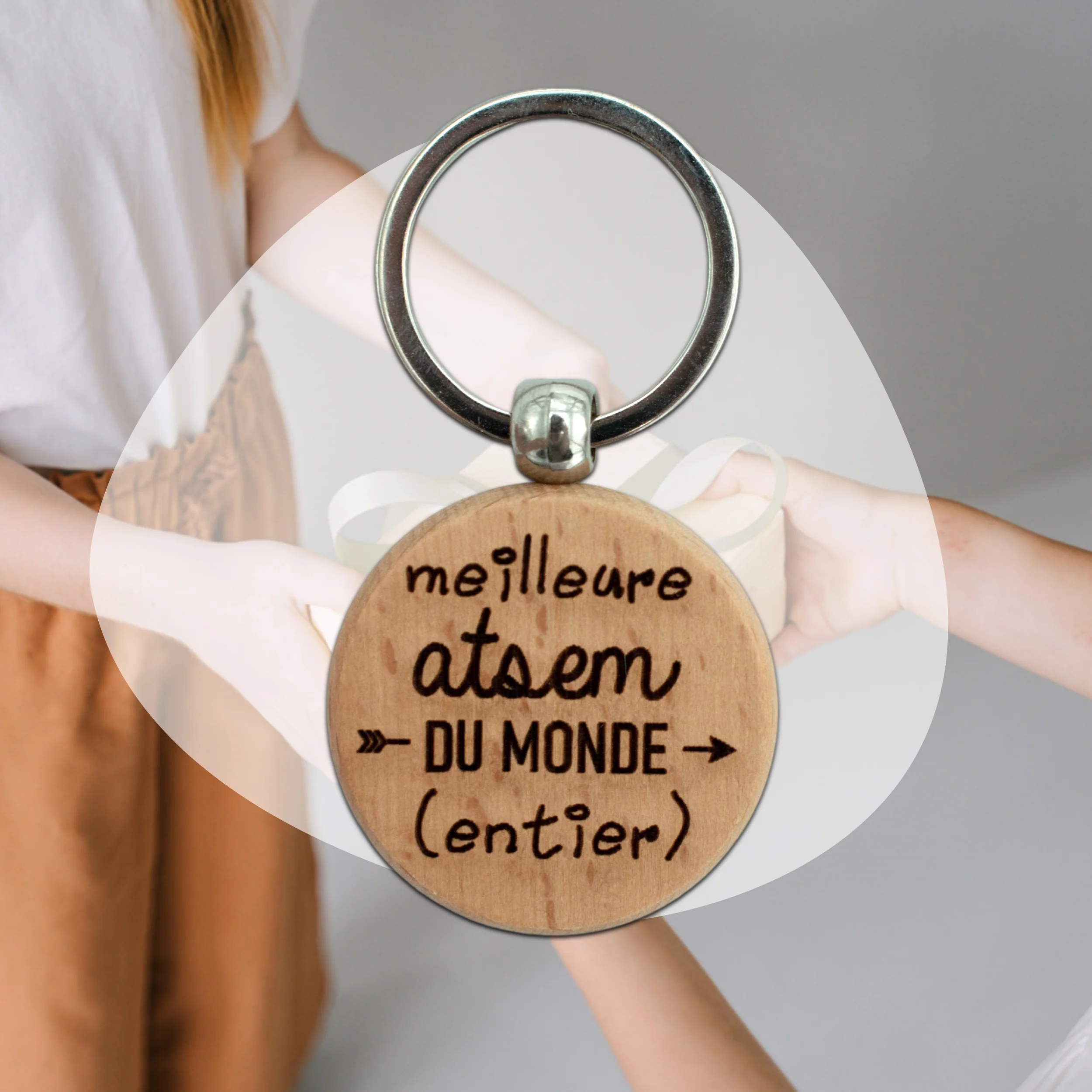 Porte-clefs rond en bois – atsem – meilleure du monde entier
