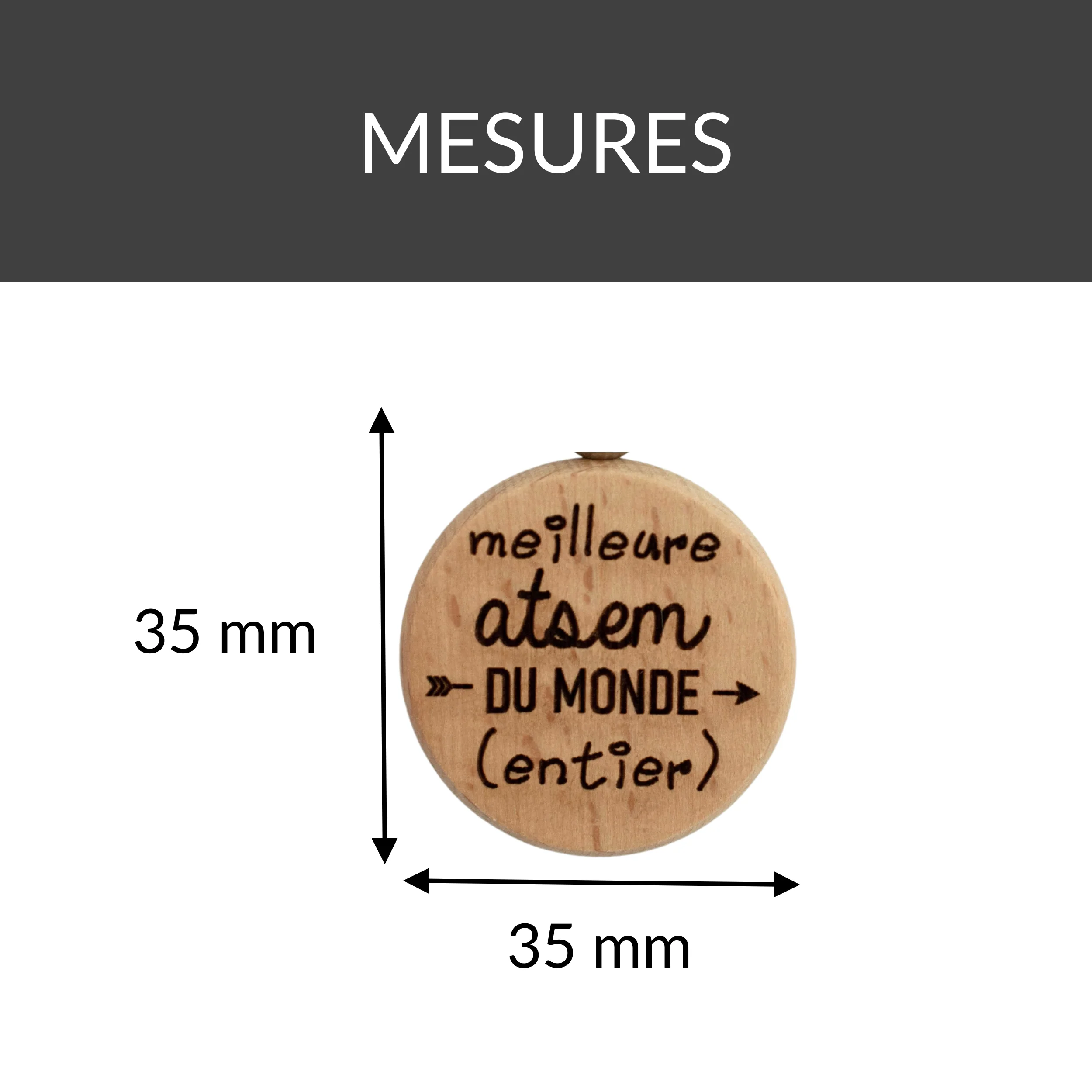 PORTE-CLEFS ROND EN BOIS – ATSEM – MEILLEURE DU MONDE ENTIER
