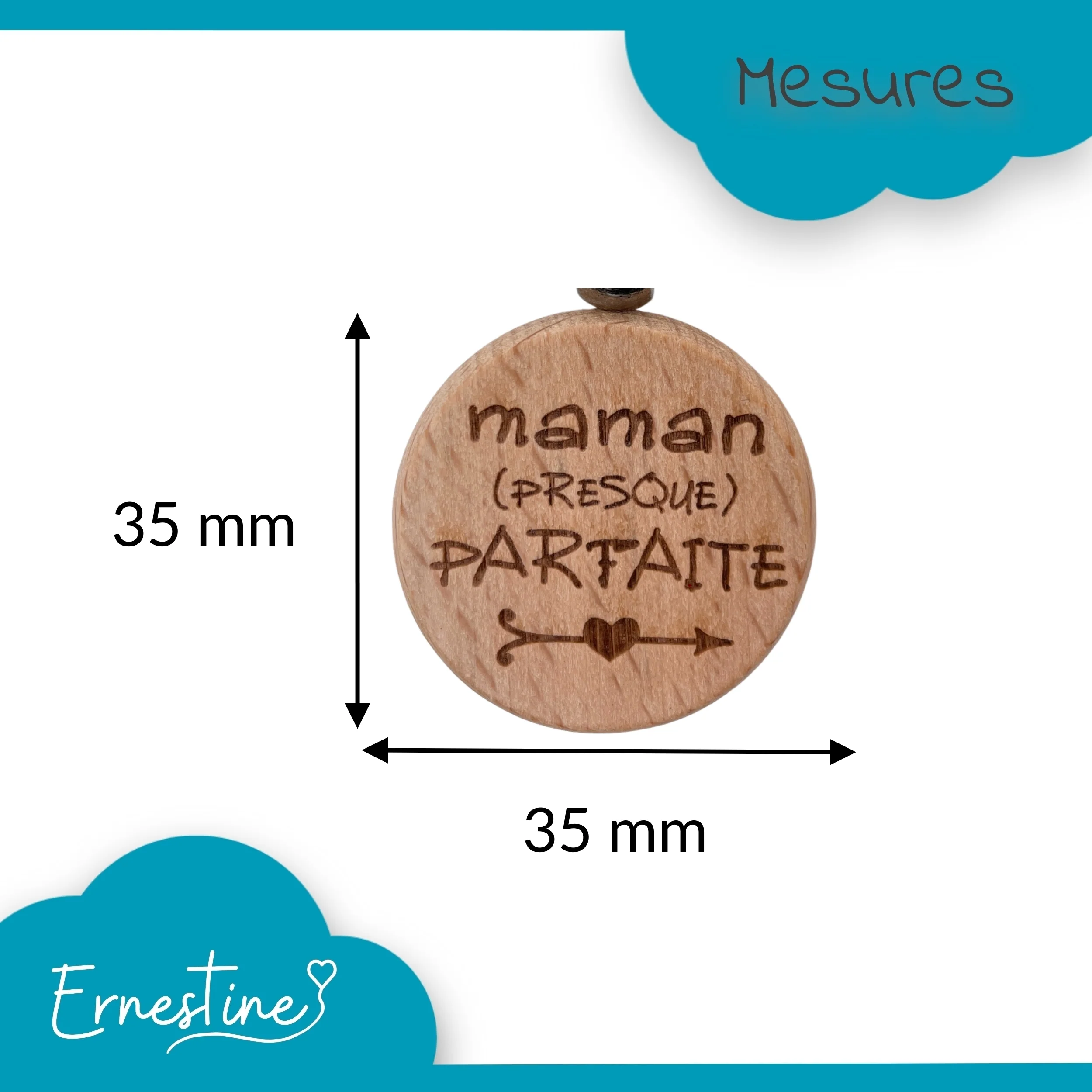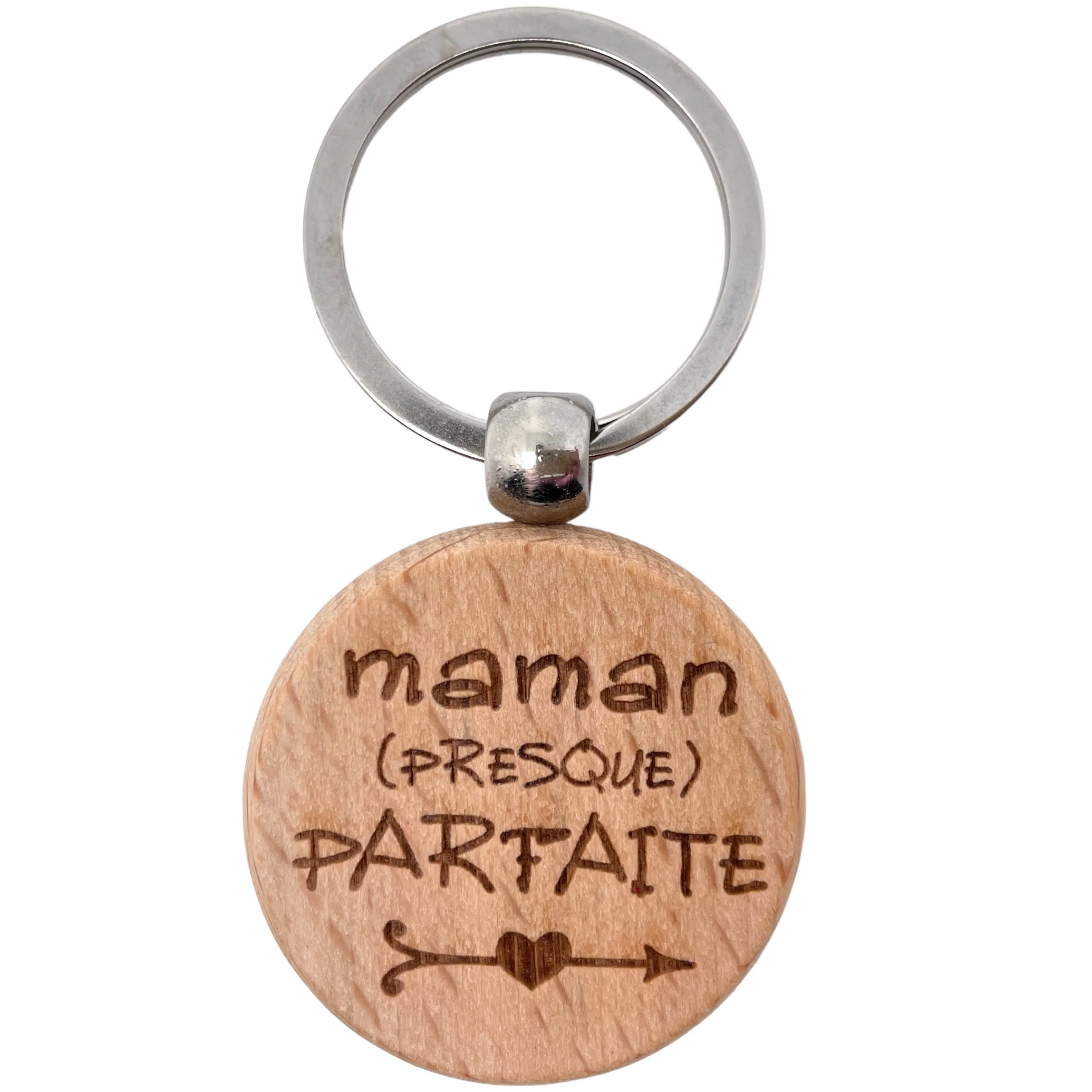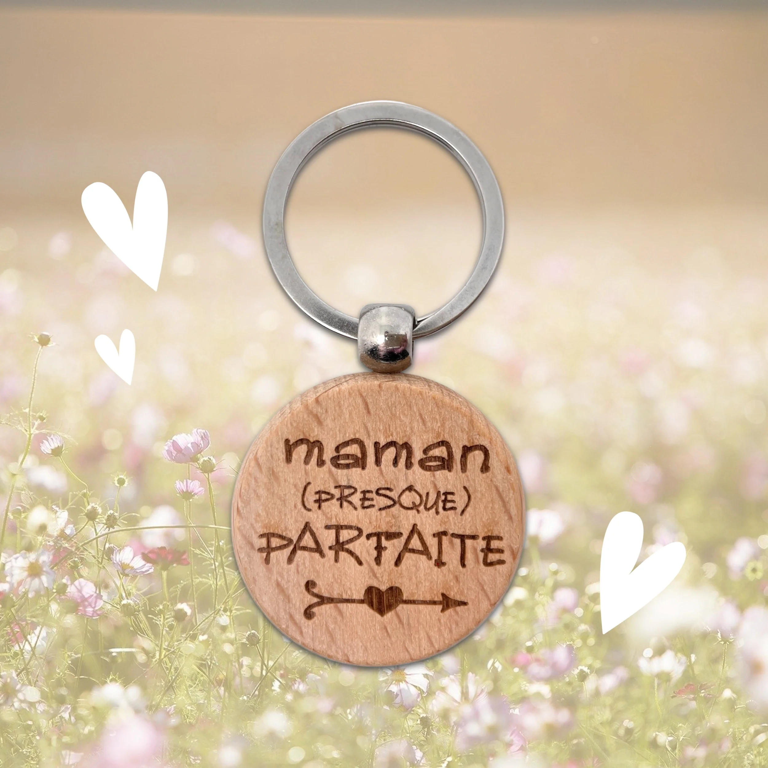 PORTE-CLEFS ROND EN BOIS – MAMAN – PRESQUE PARFAITE