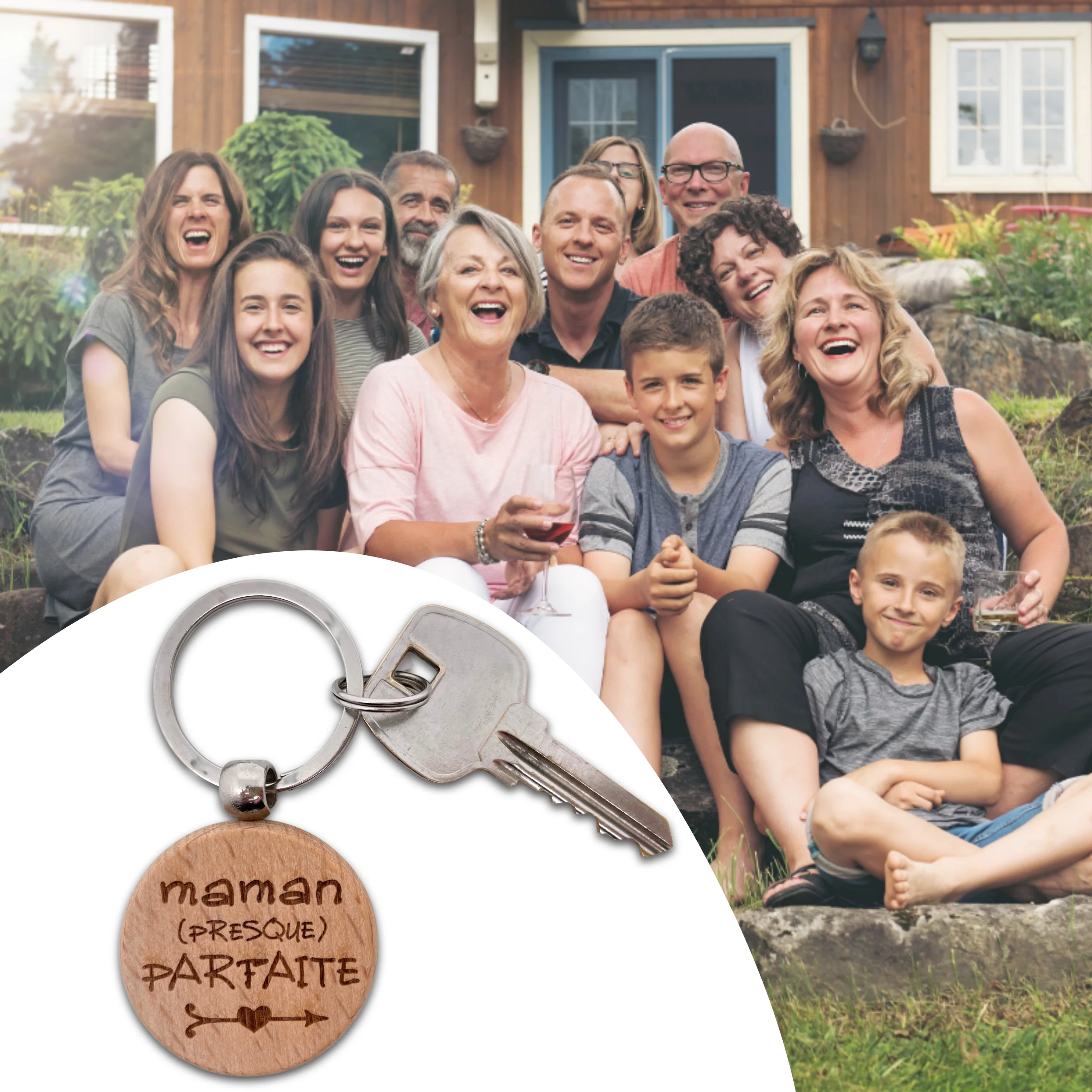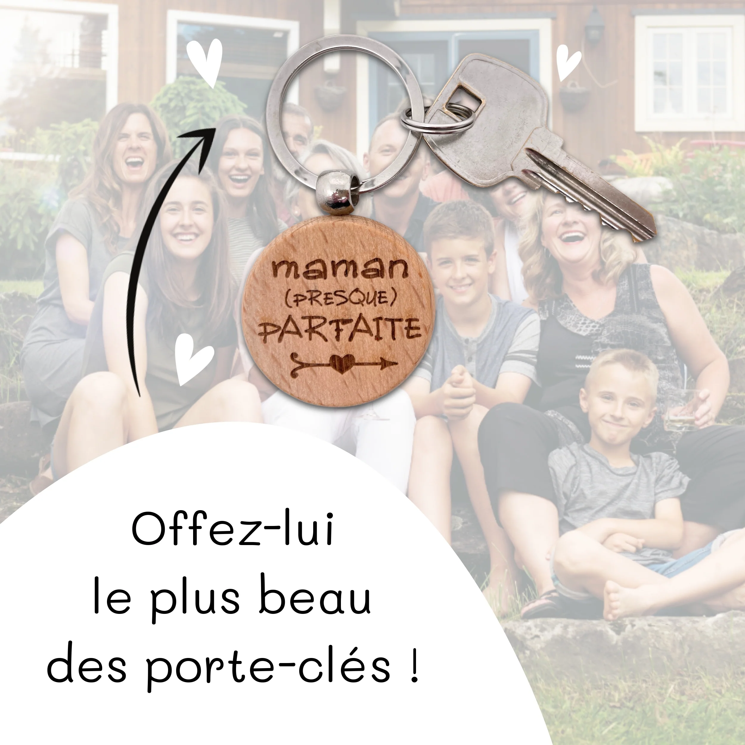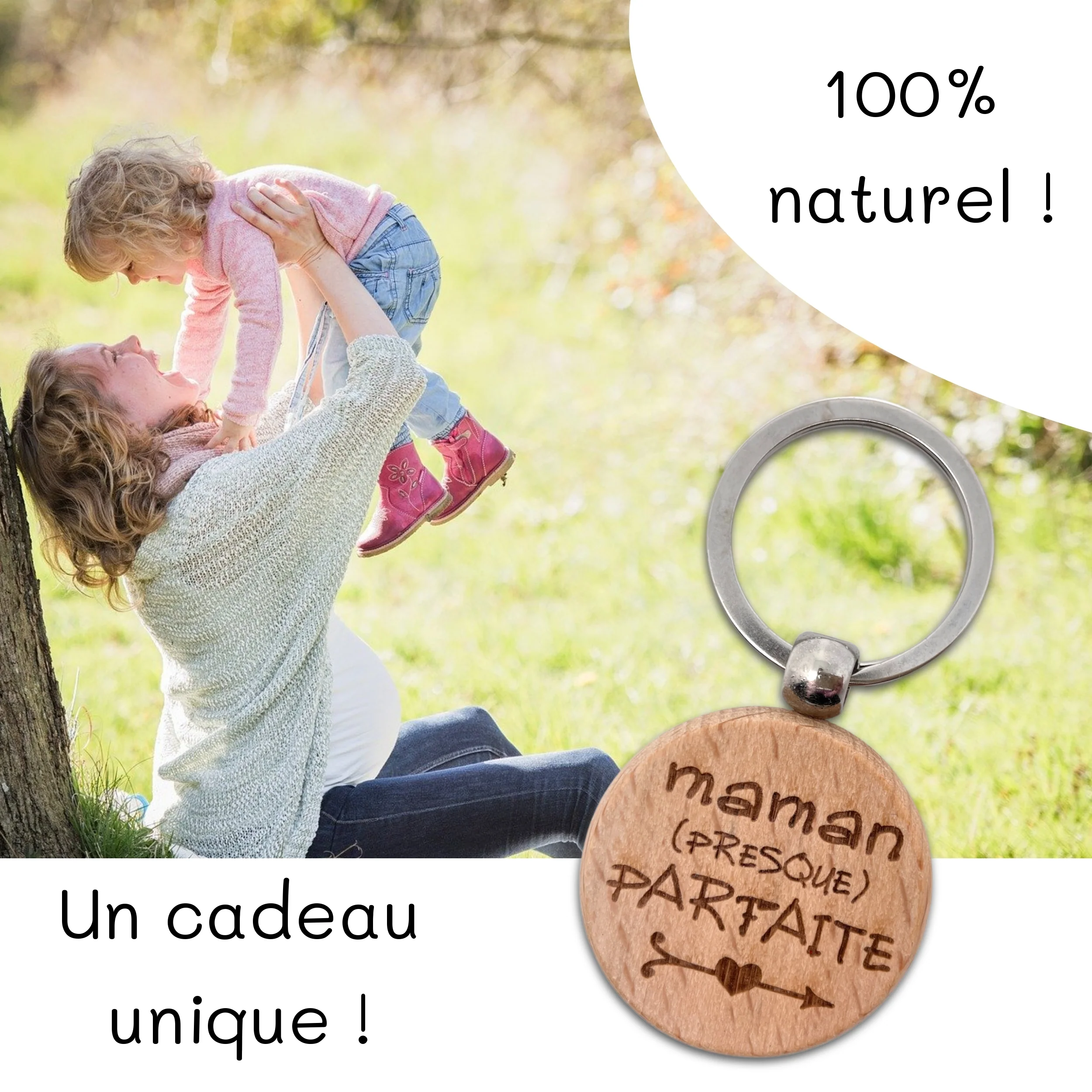 - 💝 Porte-clefs « Maman parfaite’ » 💝 : Ce magnifique porte-clefs en bois est gravé avec un message pour votre maman. Une belle attention à placer sur son trousseau afin de penser à sa famille toute la journée. Cadeau écologique et idéal pour toute occasion ! Son design émerveillera votre entourage et deviendra un souvenir des moments passés ensemble…