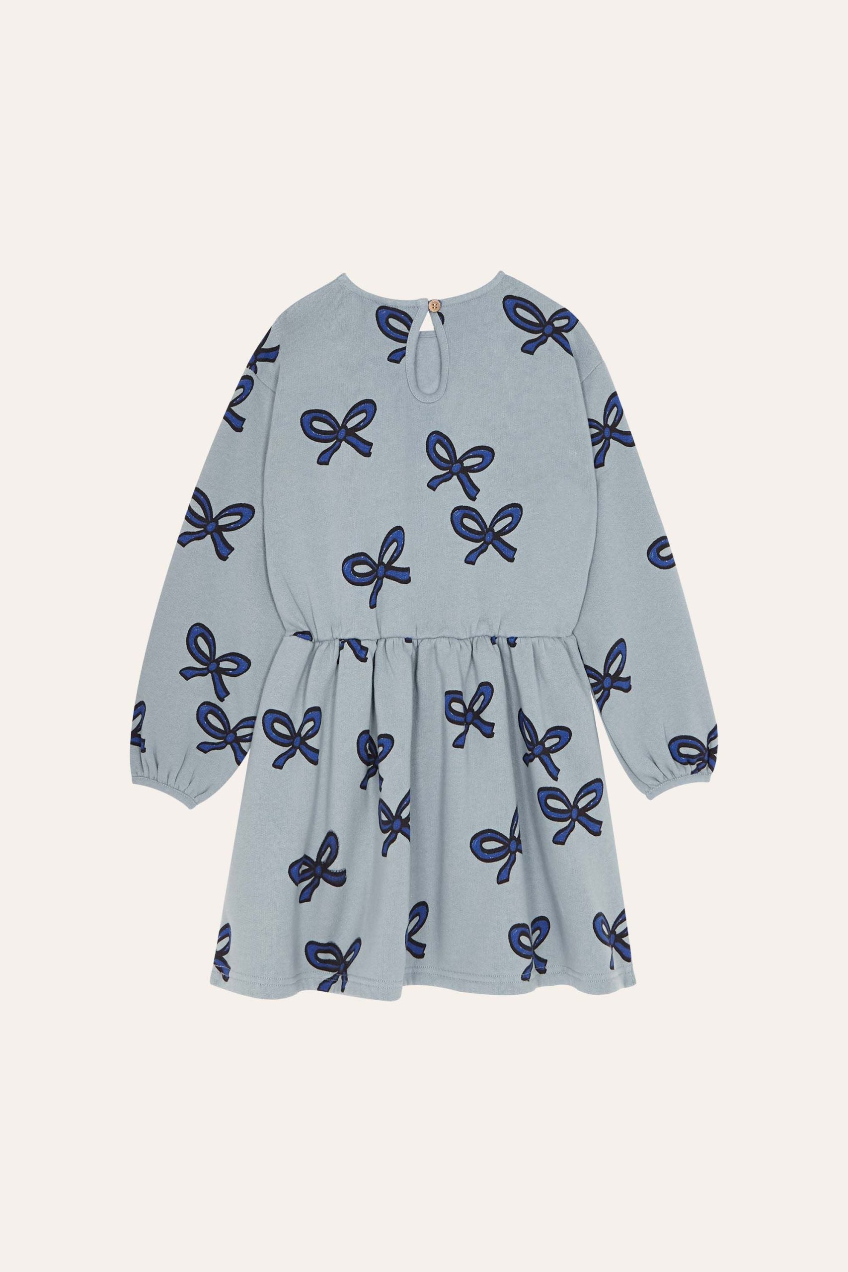 Cette robe est l’accessoire idéal pour habiller tes looks! Avec son imprimé de rubans bleu foncé et son coloris bleu clair, elle est prête pour te faire jouer dans la cour des grands!