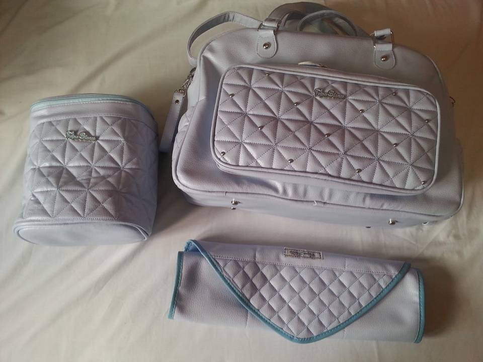 Confectionné en similicuir et matelassé avec doublure waterproof, imperméable -Anses pour portage main latérales et anse longue. Poches extérieures et intérieures. Tapis change Petit sac pour linge sale.