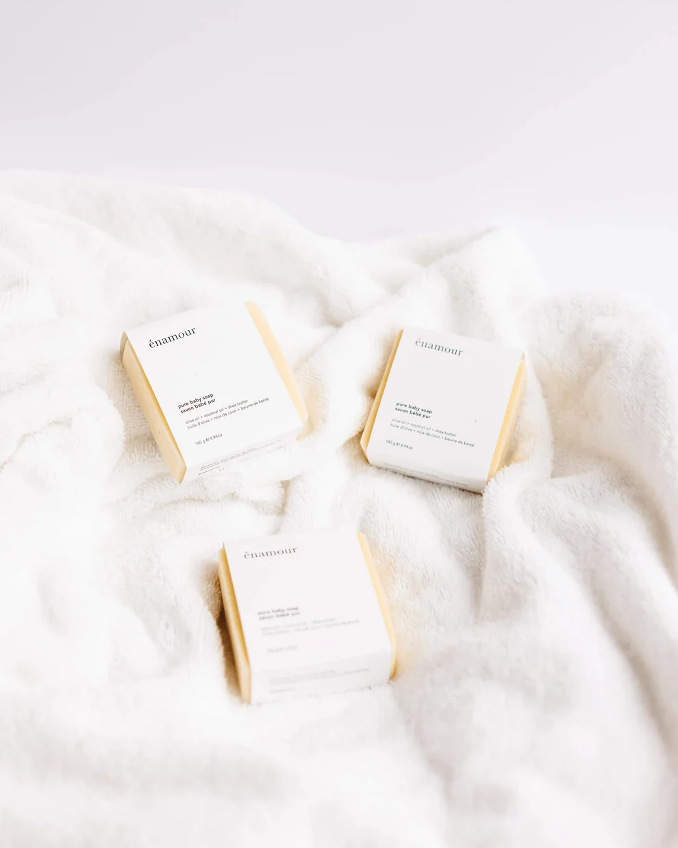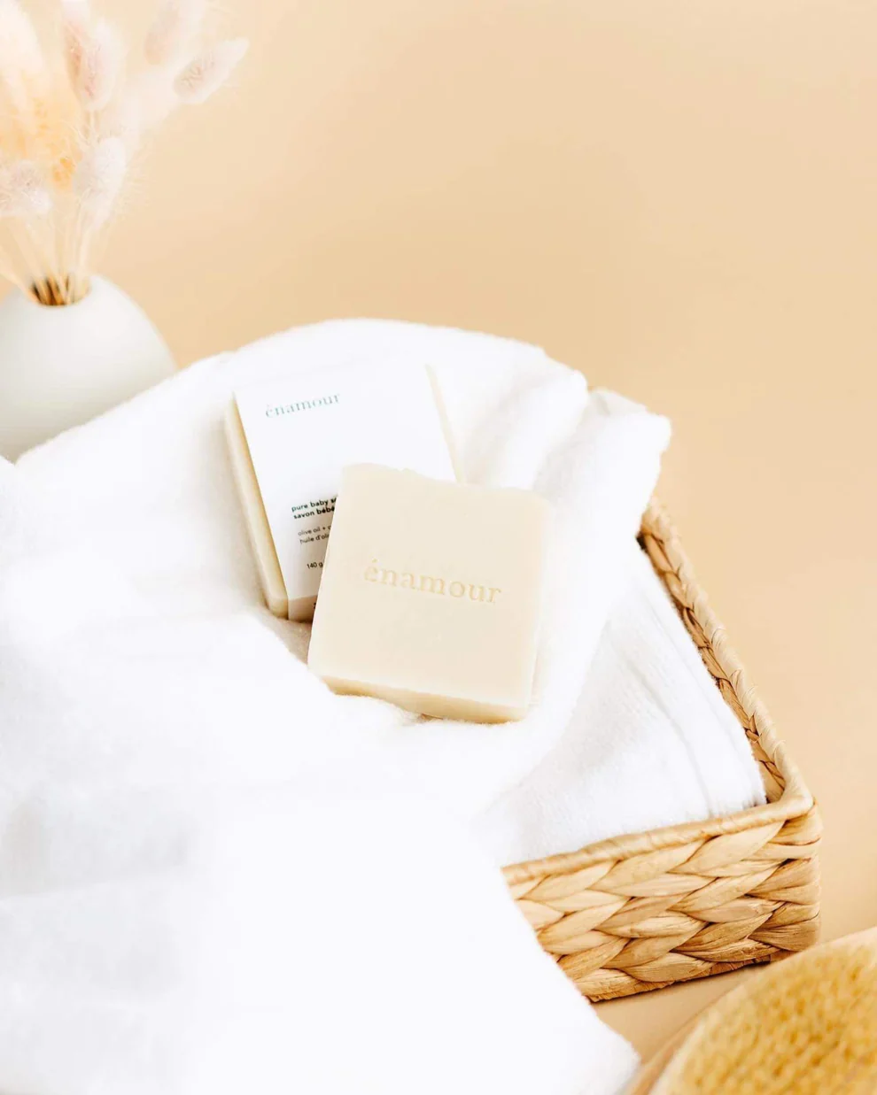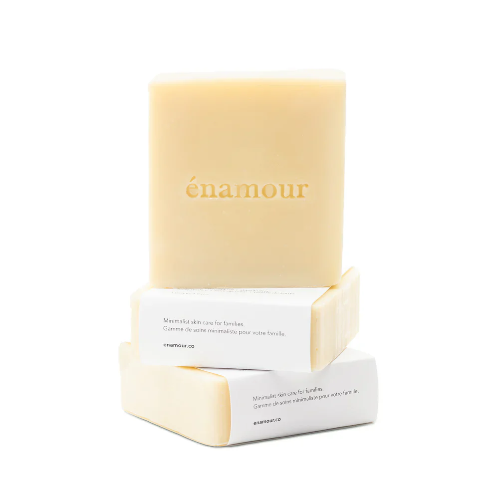 Composé à 20% de beurre de karité, ce savon doux est rempli d’ingrédients naturels qui nettoieront en douceur la peau et les cheveux (et même dans les plis des cuisses dodues). Pour bébé et toute la famille!