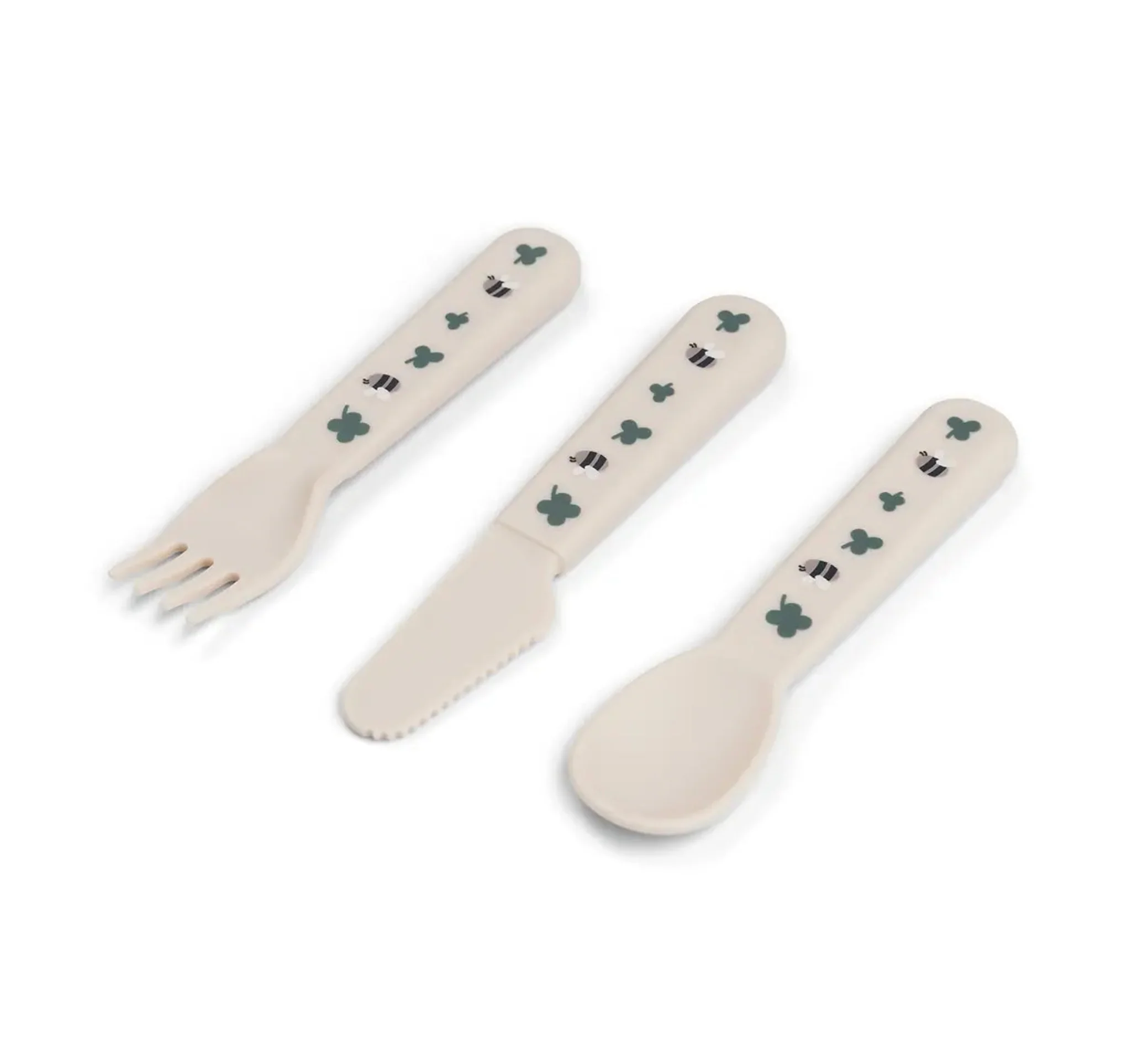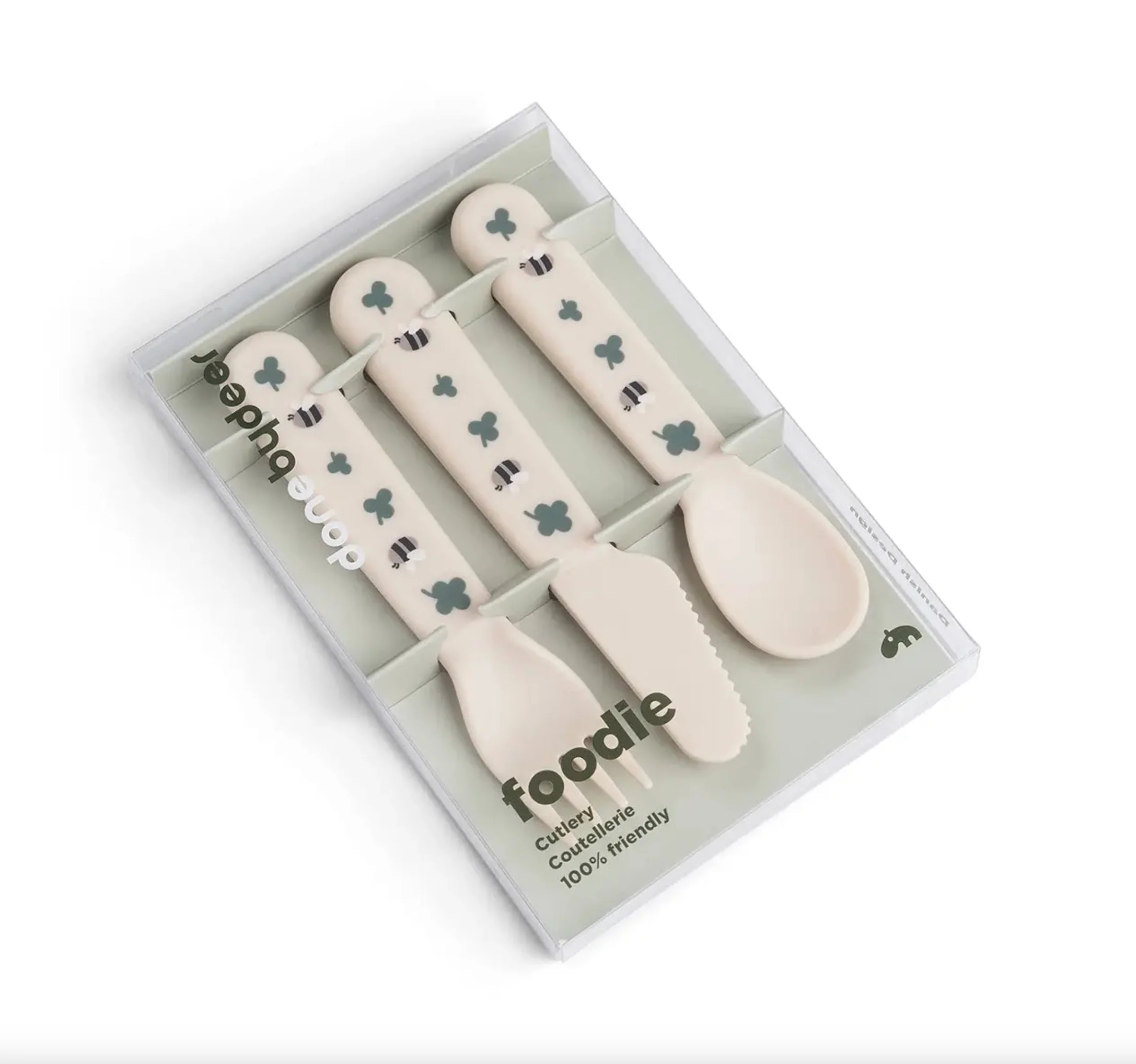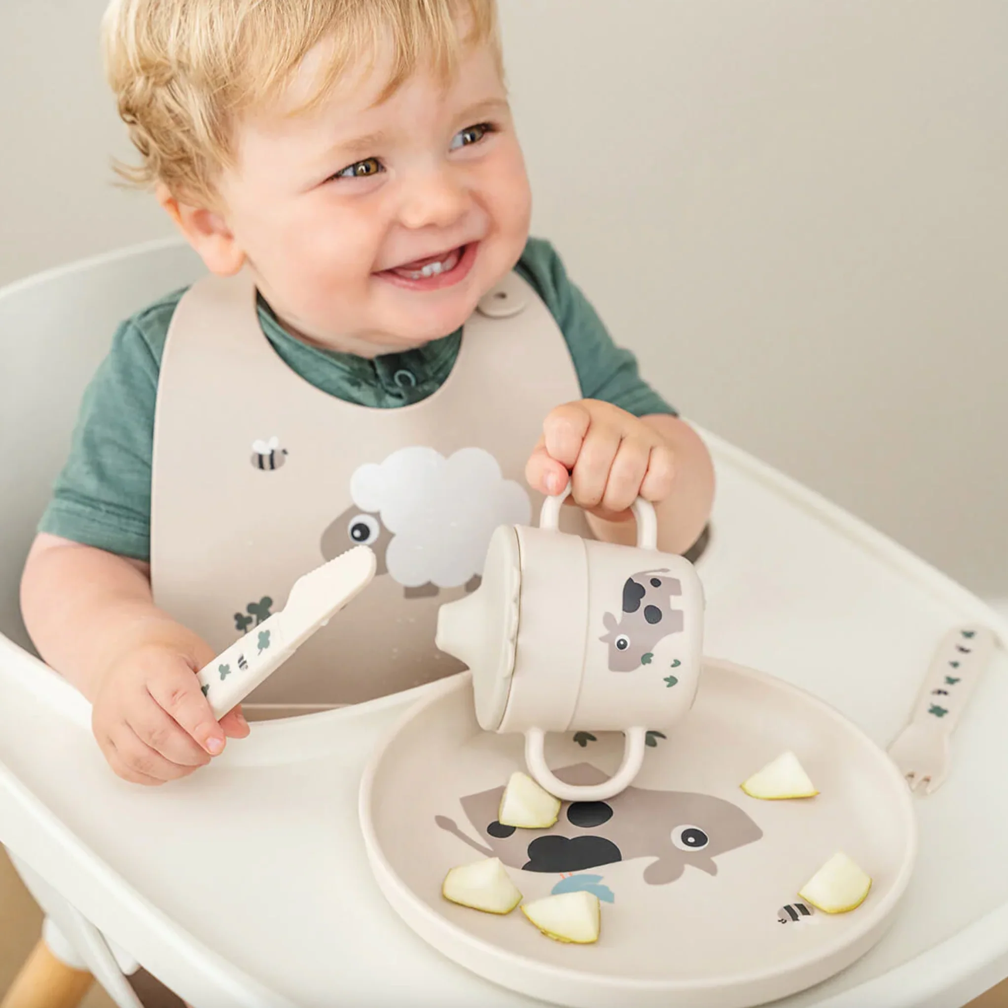 Un set de couverts avec des bords arrondis pour que votre mini puisse manger en toute autonomie et en sécurité.