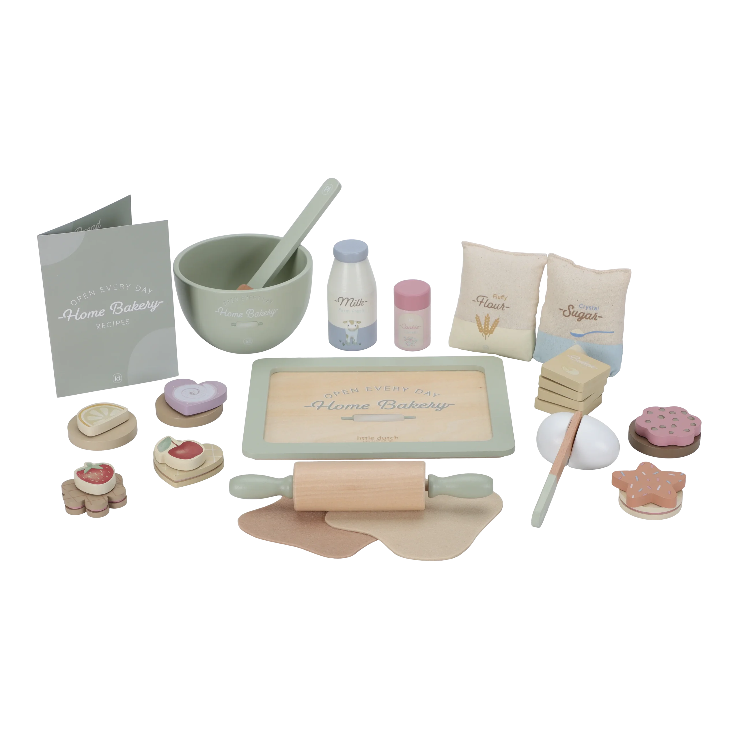 Avec ce set de pâtisserie en bois, les enfants s’amusent à préparer de délicieux biscuits comme de vrais boulangers. Le coffret comprend tout le nécessaire pour s’imaginer en pleine séance de cuisine : carte de recettes, bol à mélanger, plaque de cuisson avec biscuits, garnitures, œuf, beurre, farine, sucre, lait… et même des paillettes colorées pour la touche finale !