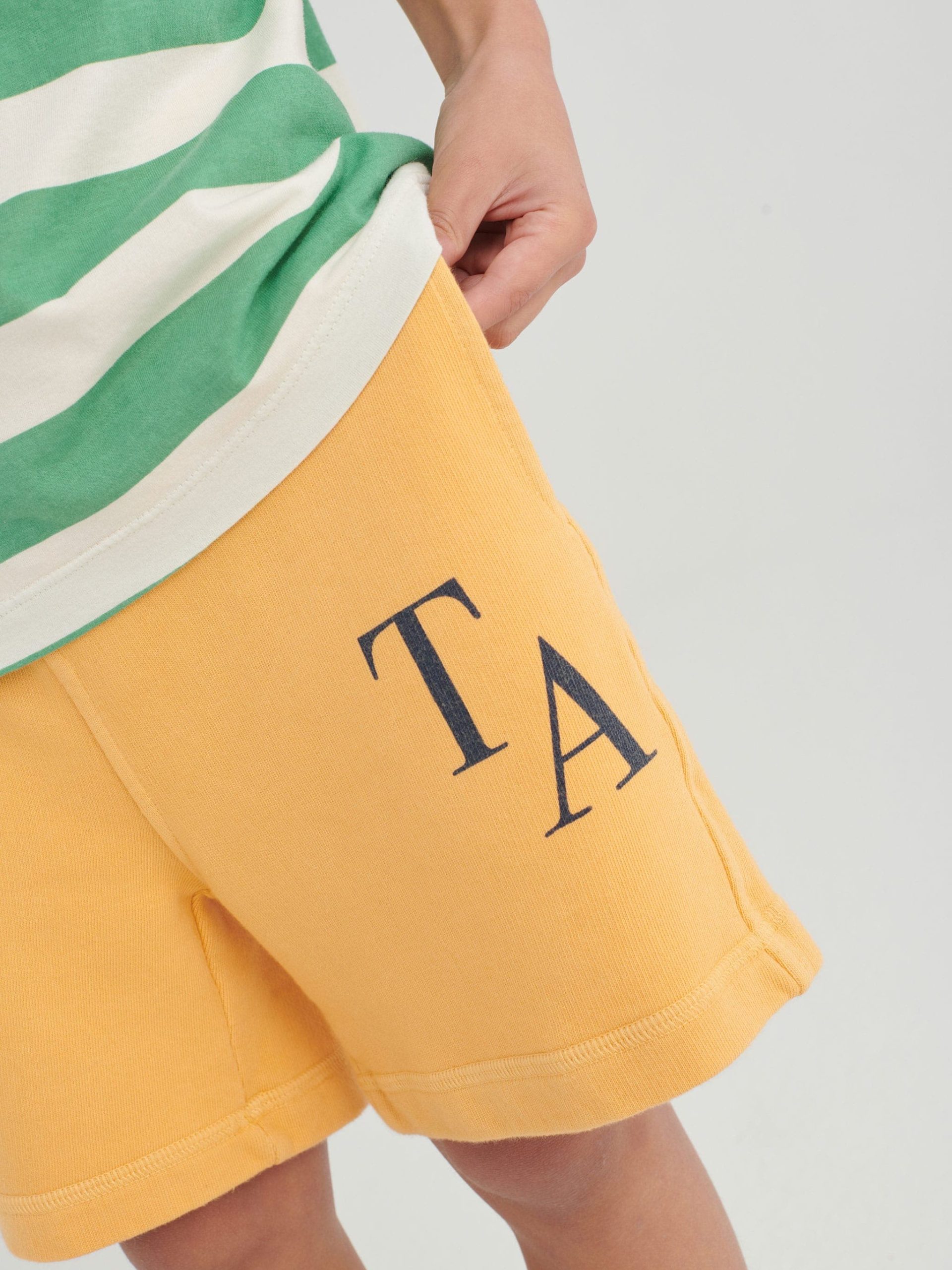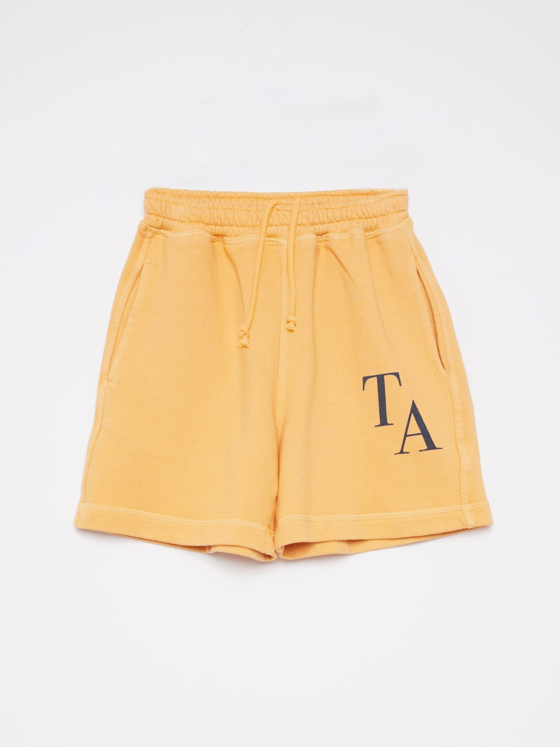 Le short nº04 en crème abricot est fabriqué en molleton de coton 100 % biologique et porte notre logo TA imprimé sur le devant. Il est doté d’une ceinture réglable et de poches latérales. Il a une coupe droite.
