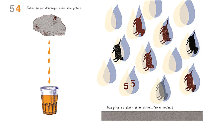 Quelle est la longueur d’un bout de ficelle ? À quoi ressemble l’Univers ? Où est le milieu de nulle part ? Qu’est-ce qui est apparu en premier : l’œuf ou la poule ? Connaissez-vous les réponses à ces questions ? En ce qui me concerne, c’est non ! Car il y a des questions sans réponses, ou des questions auxquelles il est si difficile de répondre que cela revient au même. D’autres encore ont tant de réponses qu’il est impossible de n’en donner qu’une. Quoi qu’il en soit, si vous vous êtes déjà posé l’une de ces questions, alors ce livre est fait pour vous : un livre plein de choses impossibles – questions sans réponses, casse-têtes absurdes, idées saugrenues ! Jetez un œil – et vous découvrirez peut-être que certaines choses que vous auriez crues impossibles sont après tout possibles ! Un univers surréaliste, poétique, qui oscille entre des questions tout à fait sérieuses et des interrogations complètement saugrenues. Une sorte de documentaire loufoque, pour envisager et penser les choses autrement, un univers au graphisme plein de fraîcheur et d’étrangeté.