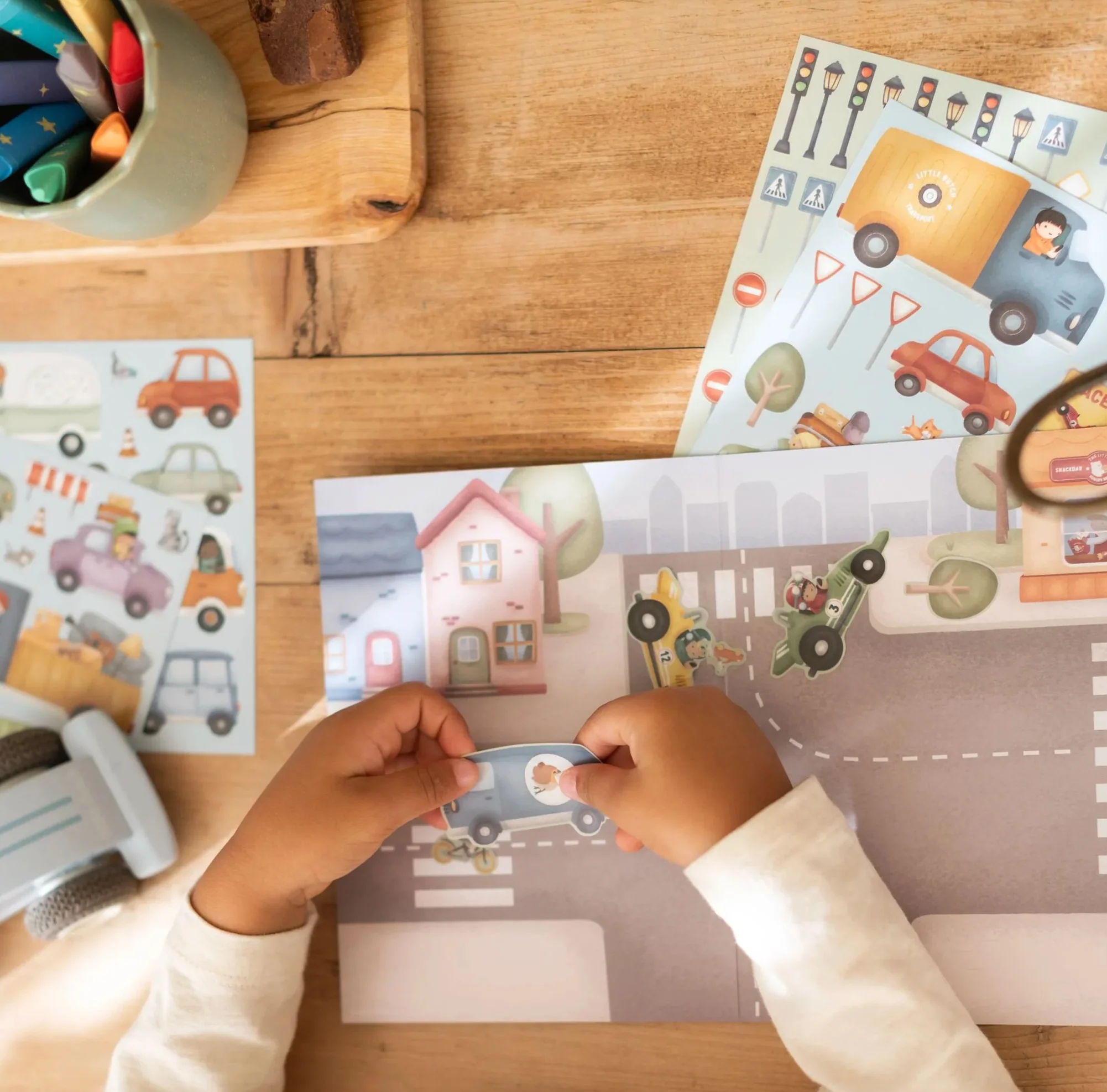 Laissez l’imagination de votre mini prendre vie avec cet ensemble d’autocollants joyeux. Avec plus de 100 autocollants colorés et un fond de jeu recto-verso, votre petit peut découper, coller et inventer des histoires sans fin. Idéal pour des moments créatifs ensemble, et parfait à combiner avec d’autres fournitures de bricolage. Fabriqué en papier robuste pour des heures de plaisir de jeu.