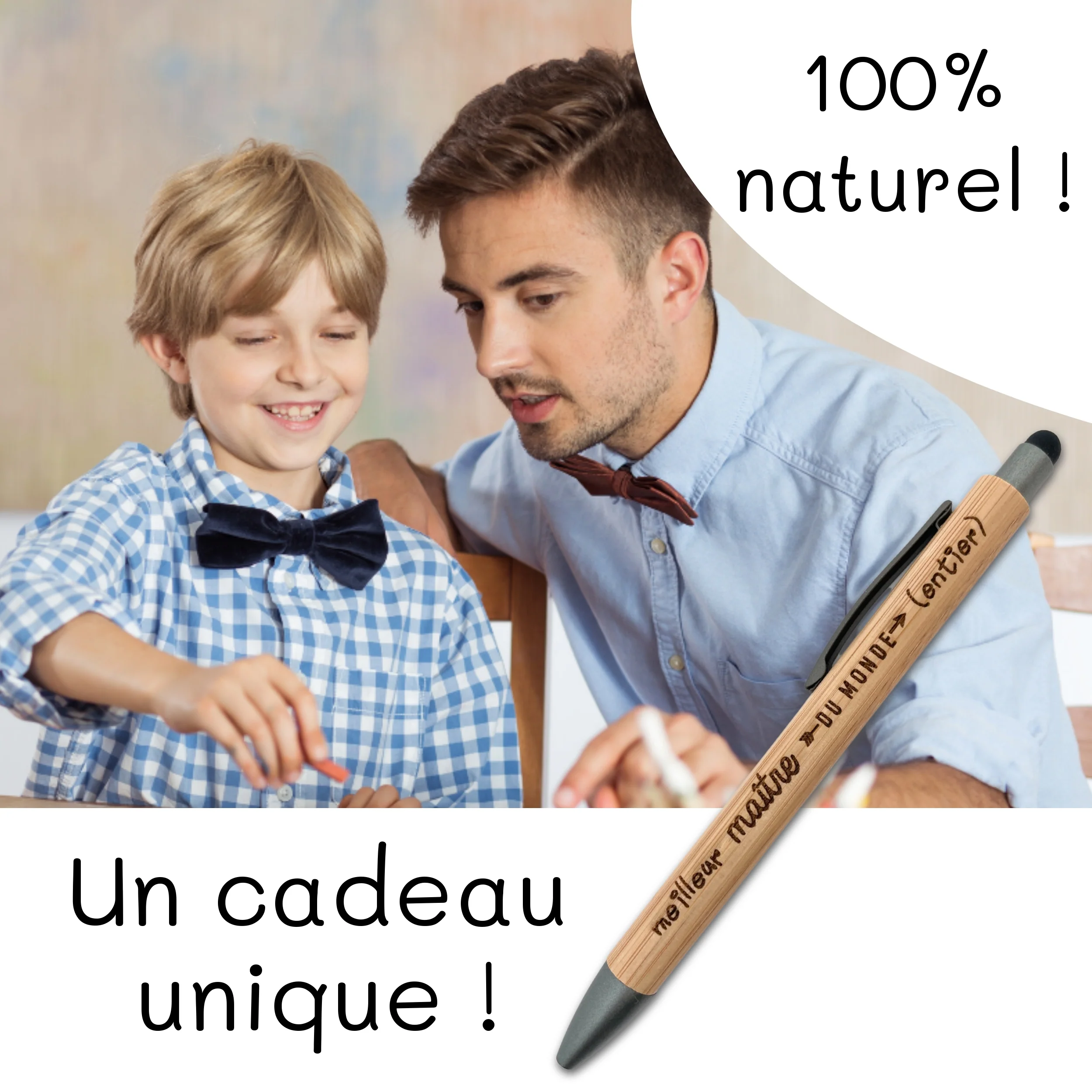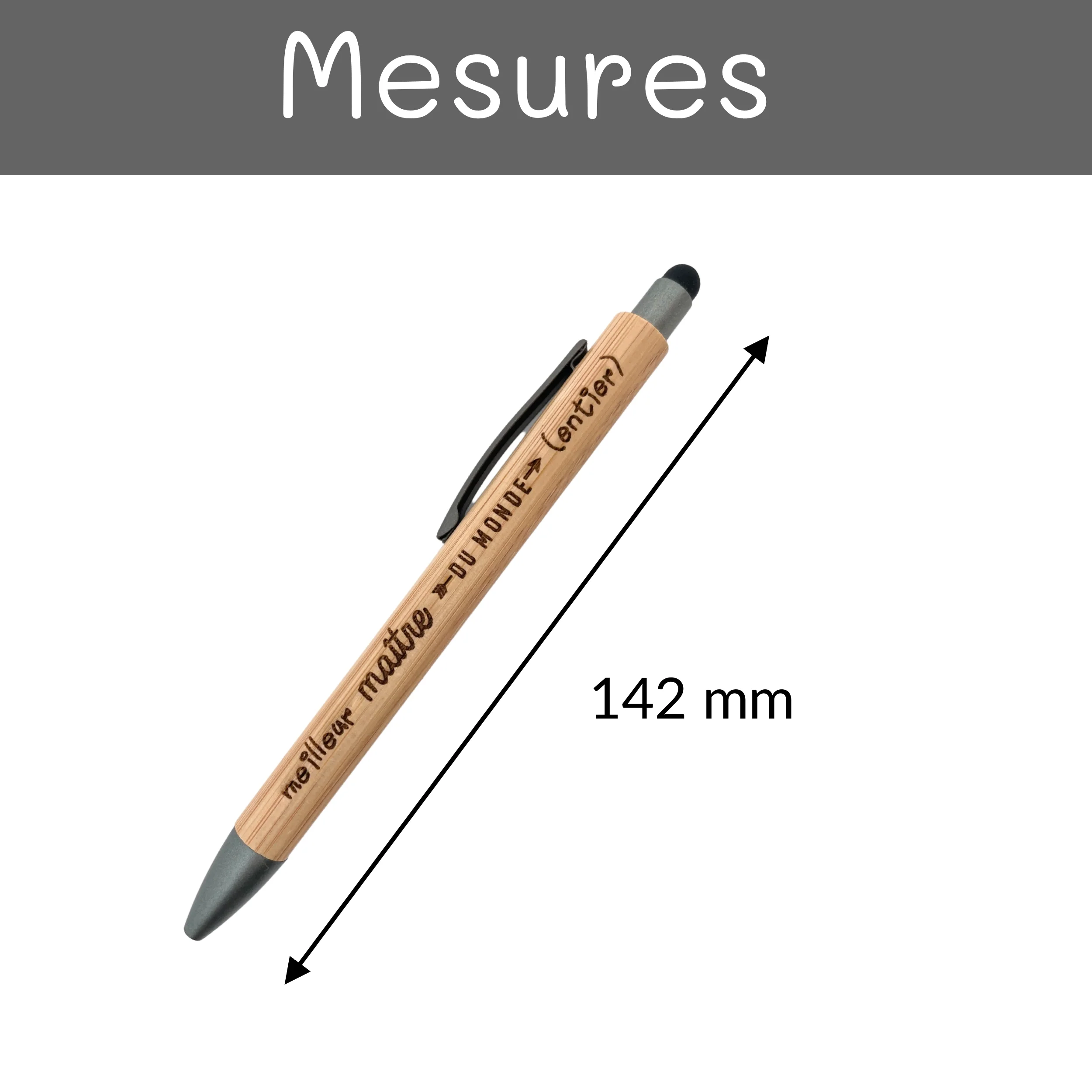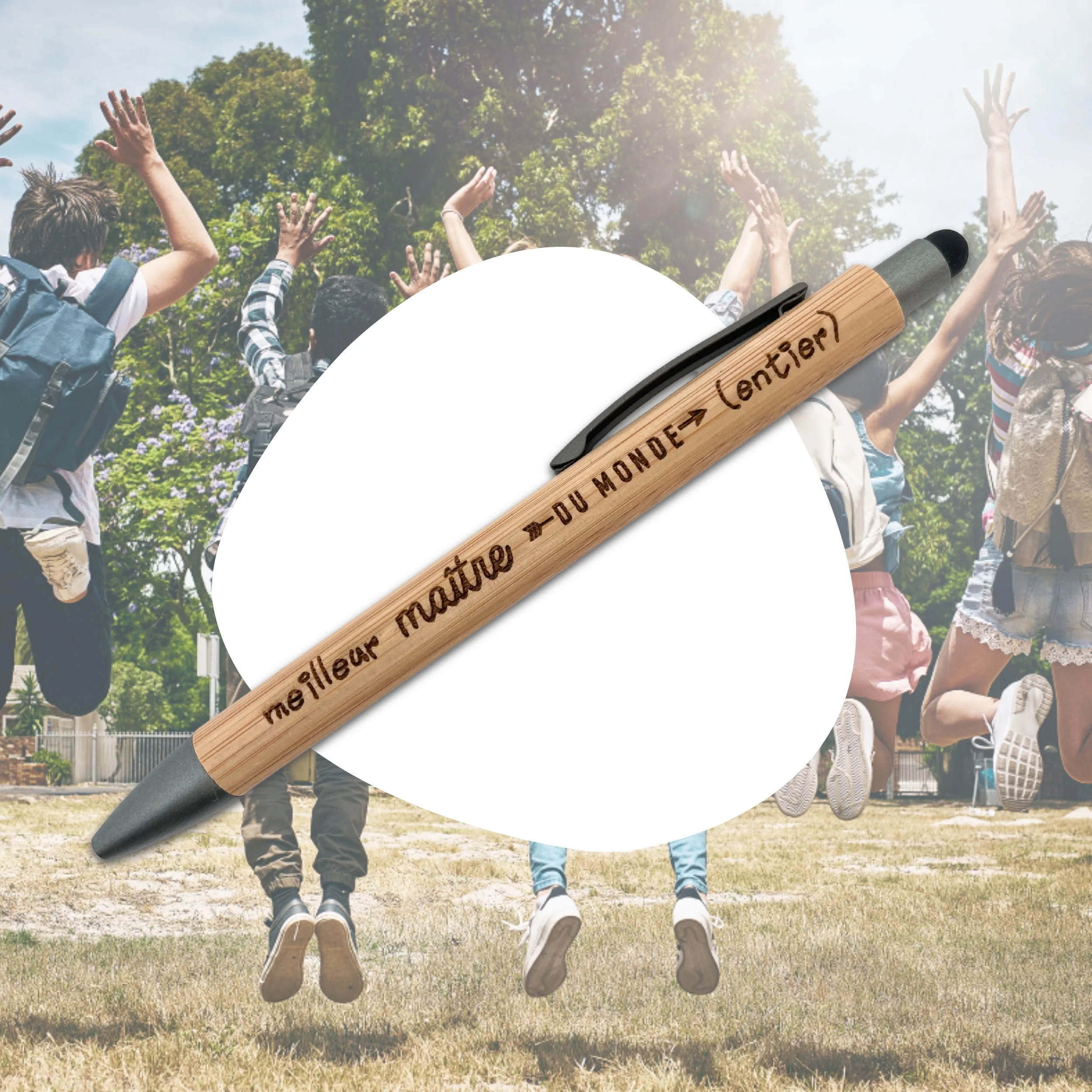 STYLO BAMBOU AVEC EMBOUT TACTILE – MAITRE – MEILLEUR DU MONDE ENTIER