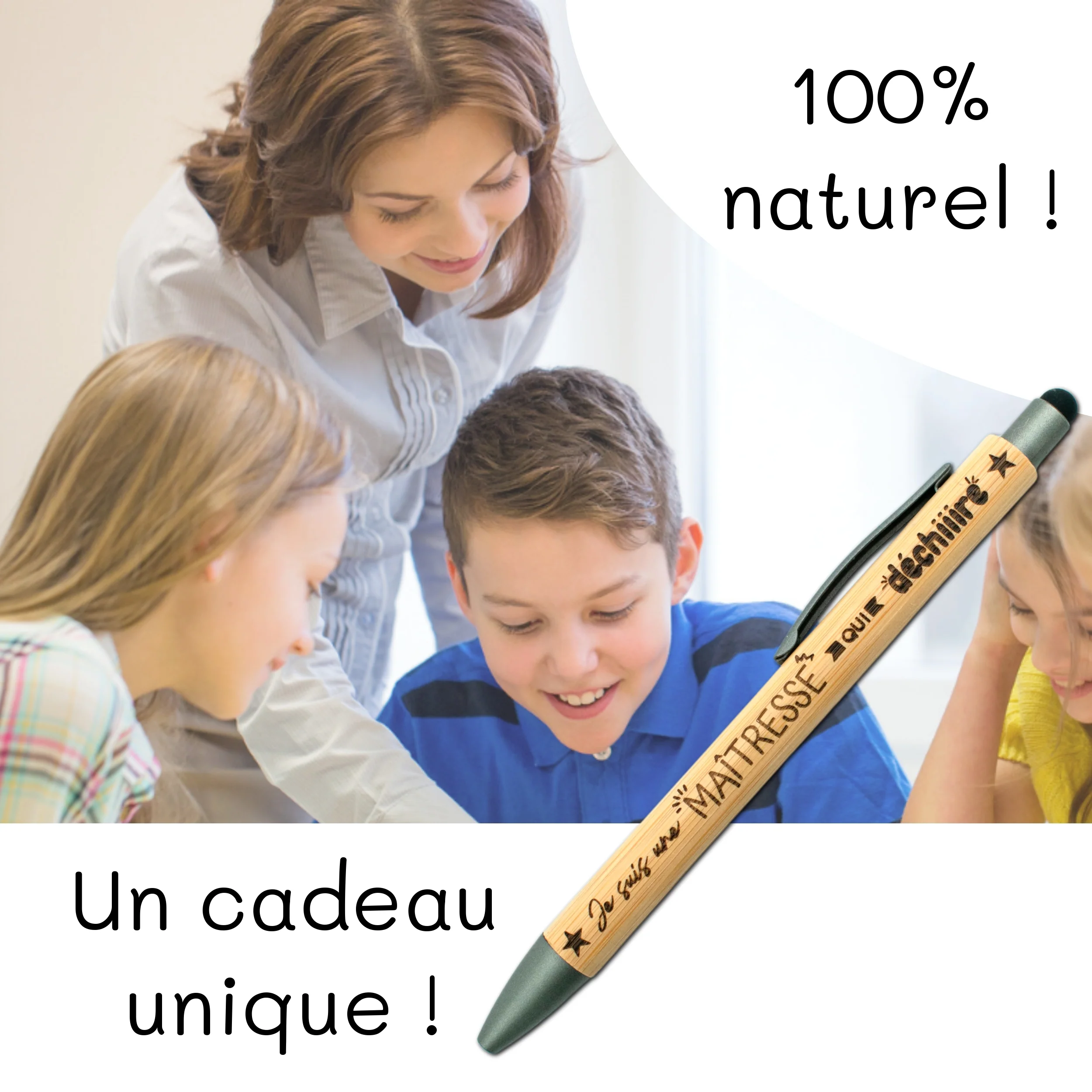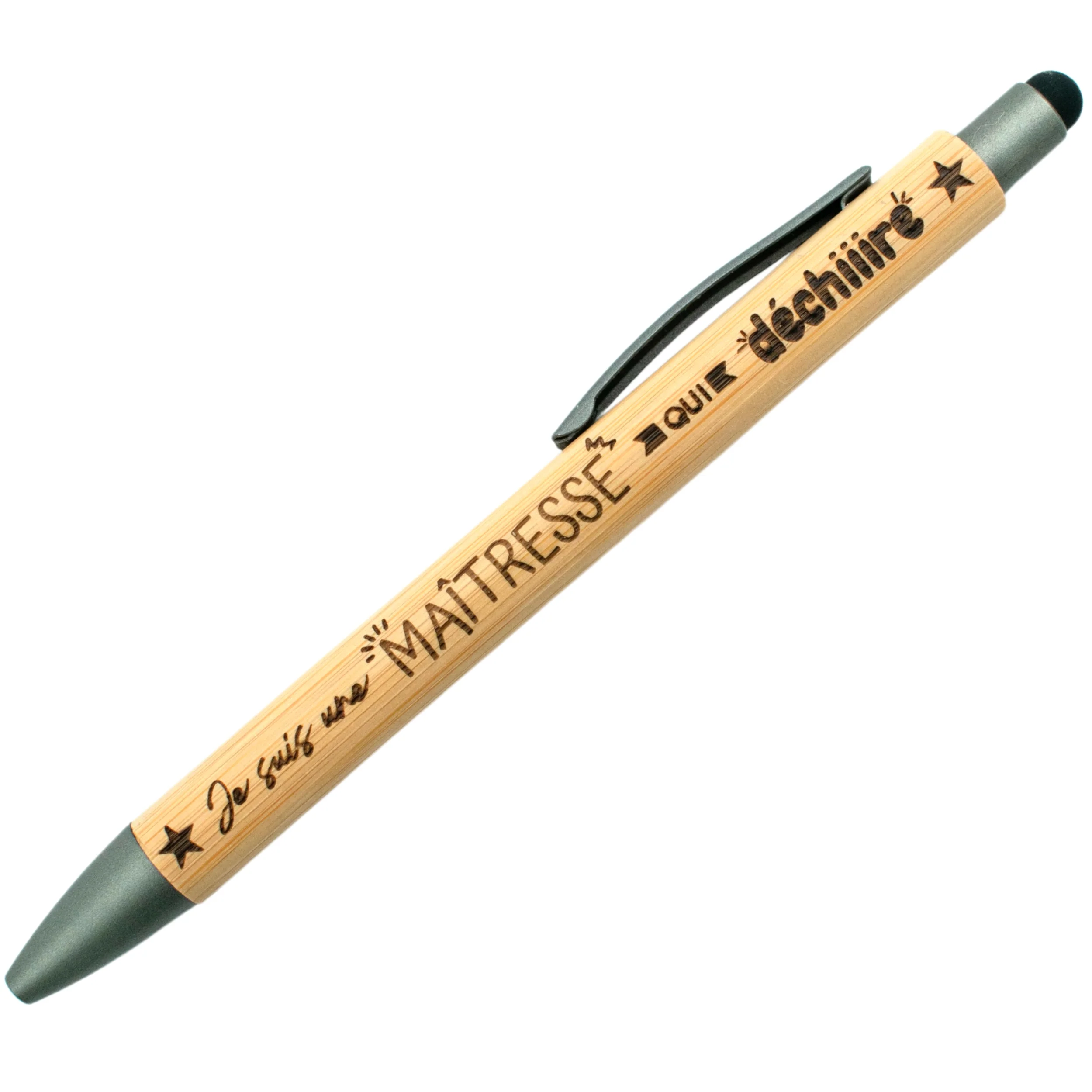 Stylo bambou avec embout tactile – maitresse – maitresse qui déchire
