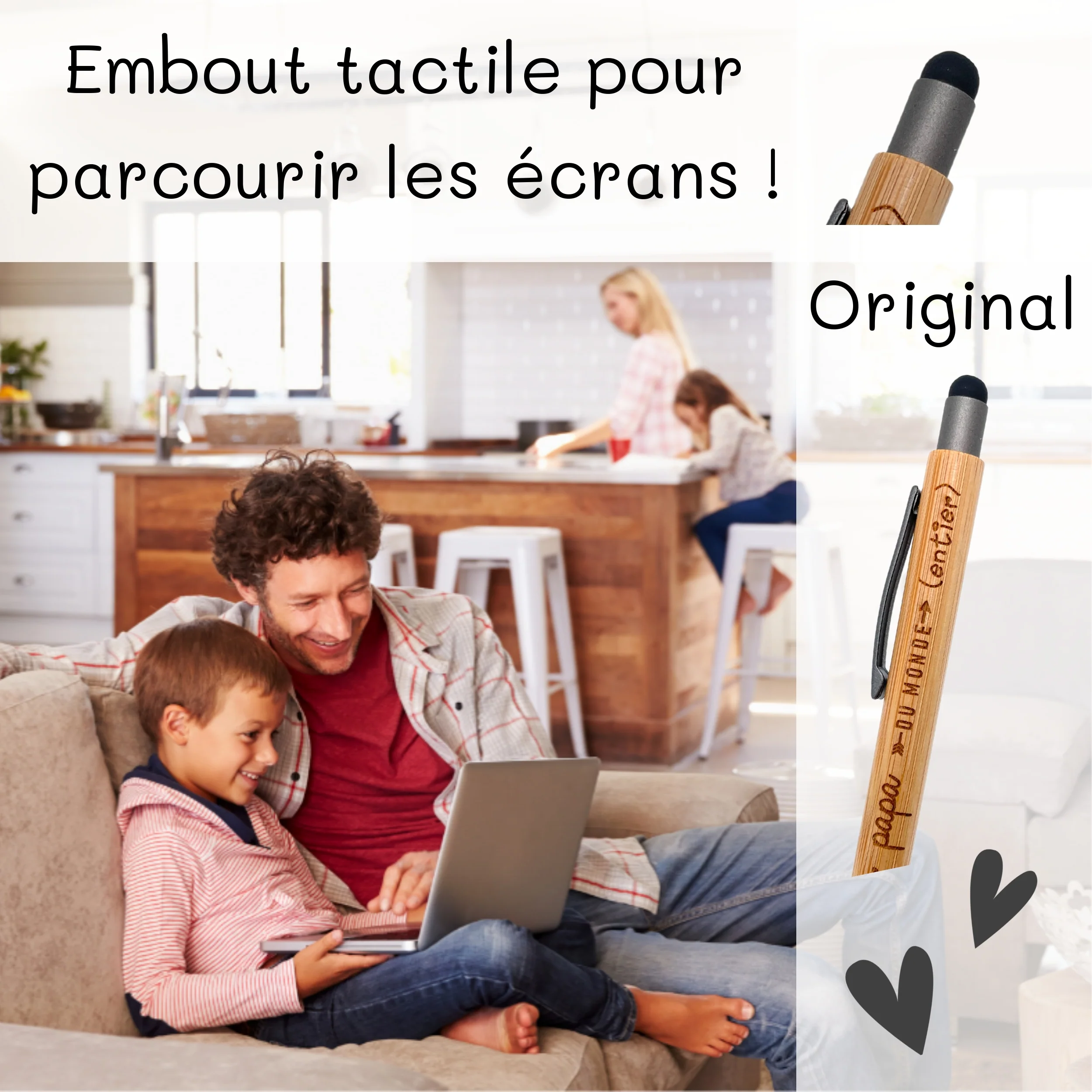 Stylo bambou avec embout tactile – papa – meilleur papa du monde entier