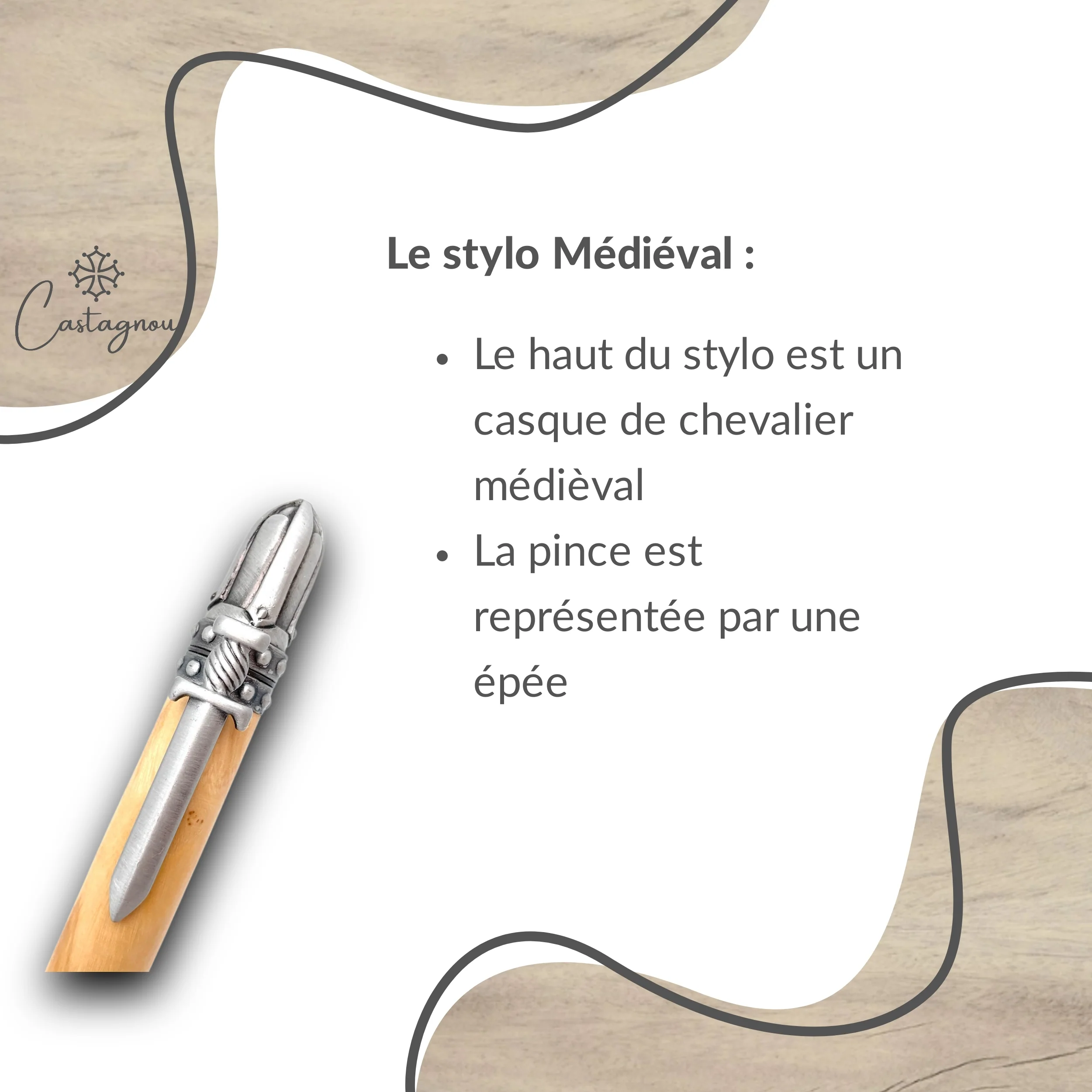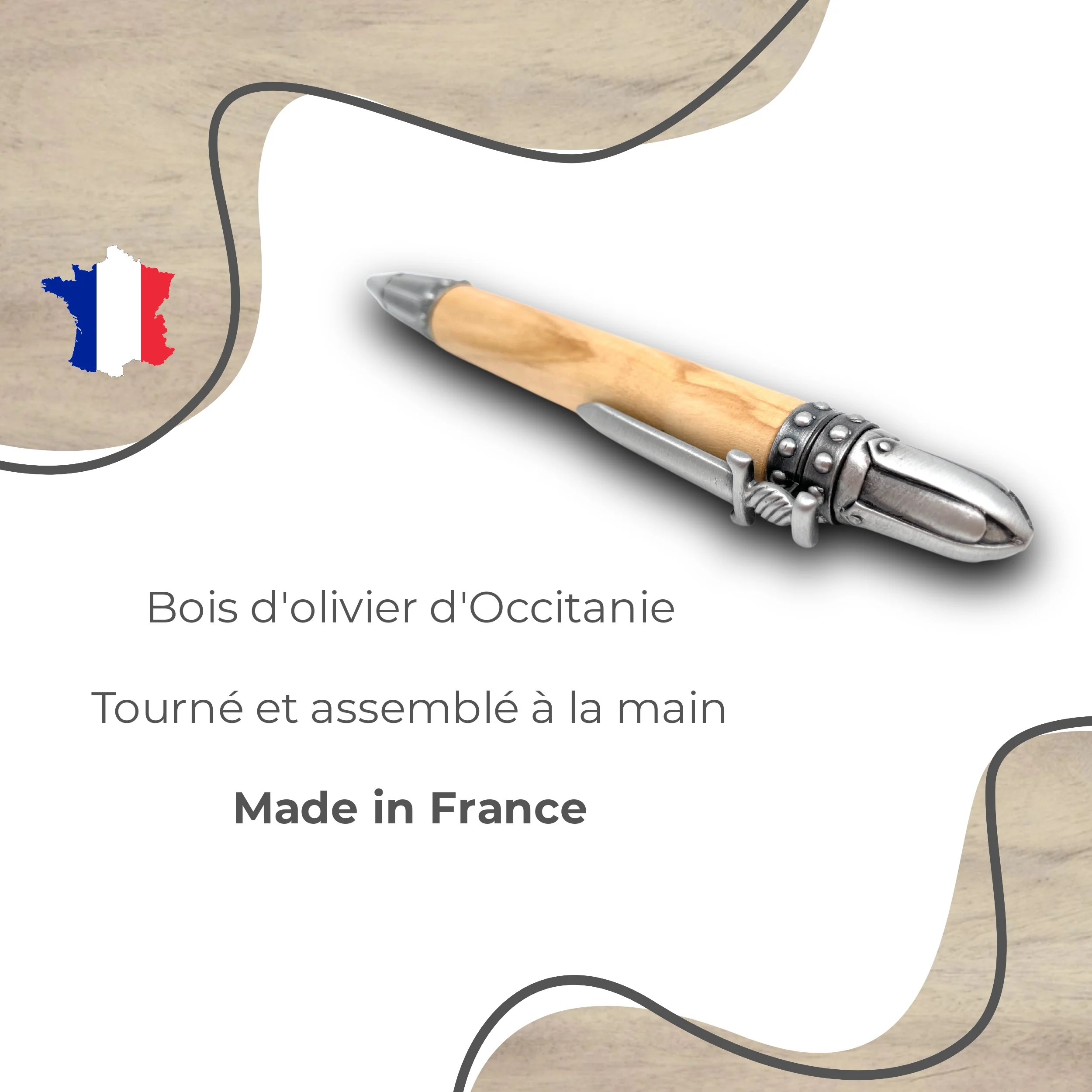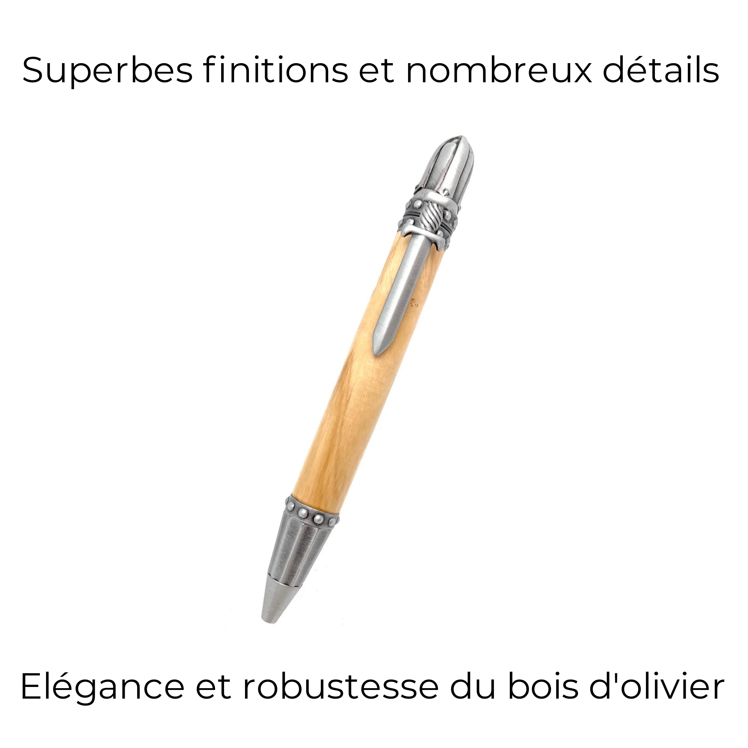 STYLO EN BOIS D’OLIVIER – MODELE MEDIEVAL