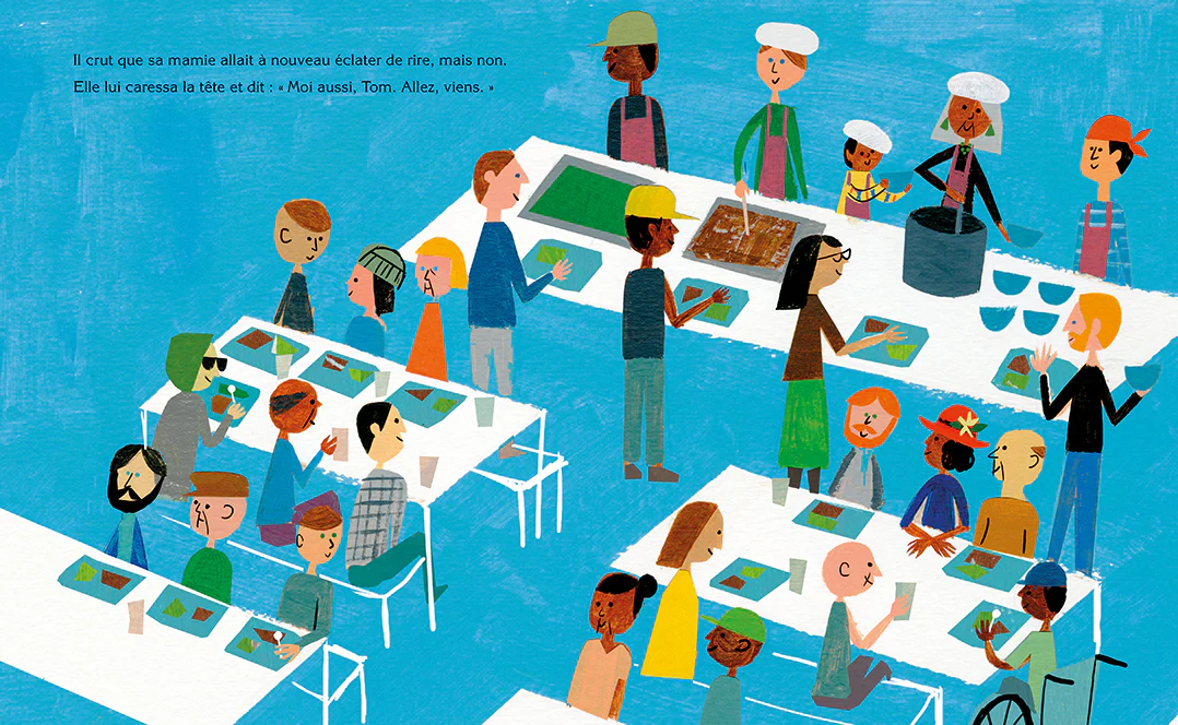 Arrivé à destination – la soupe populaire d’un quartier de la ville, où sa grand-mère est bénévole –, Tom se réconcilie avec lui-même : qu’il est bon de retrouver les habitués, de se sentir utile, d’être capable de donner…