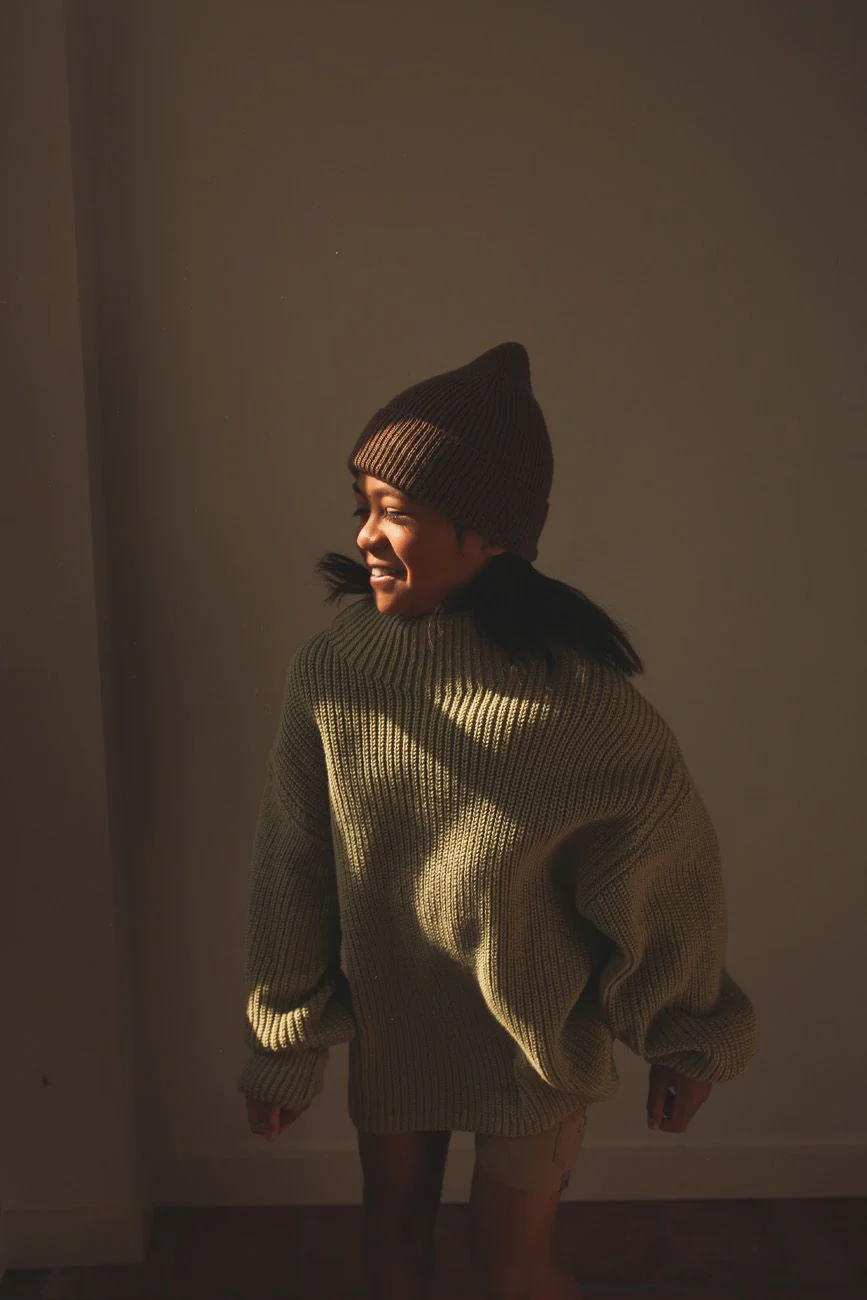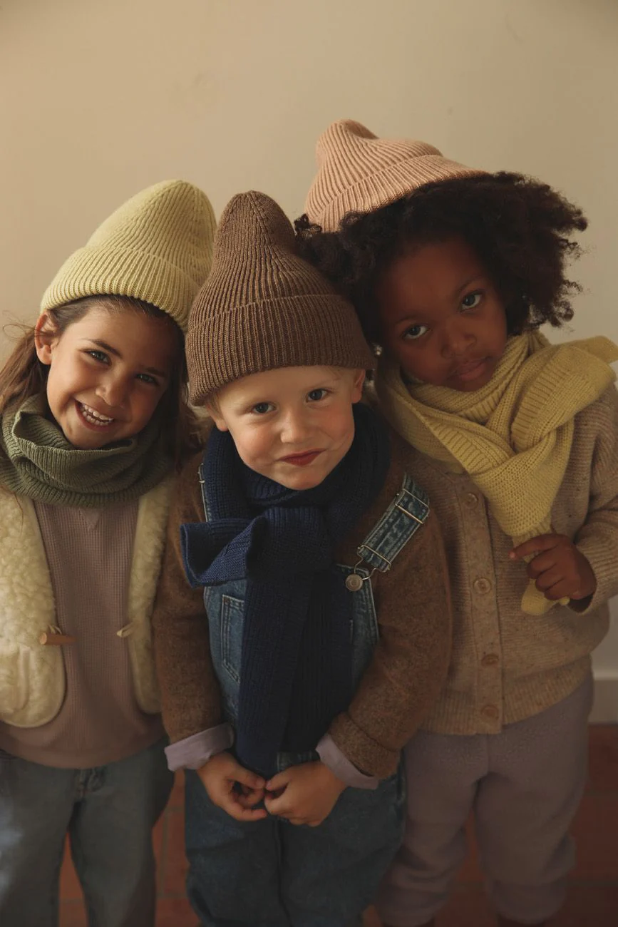 Hvid est né du cœur de la créatrice Caroline Camerlynck dans le désir d’offrir des produits de qualité pouvant être chéris par les familles des années durant. Les précieux textiles Hvid, faits de merinos, sont fabriqués de manière écologique dans un petit atelier familial en Belgique. Hvid signifie blanc en danois: chaque motif que vous tenez près de vous a d’abord été réalisé en blanc pur pour ensuite être teints avec des teintures naturelles. Ce procédé permet de créer des tricots au design impeccable et luxuriant incroyablement douillets.