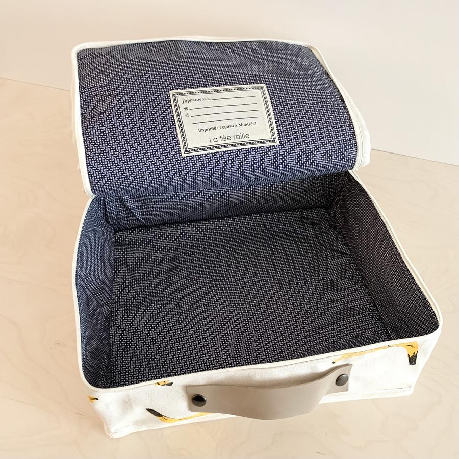 Une valisette fruitée parfaite pour cacher ses trésors, pour ammener son goûter, pour le rangement… fabriquée et sérigraphiée à la main à Montréal matériaux: coton de qualité et encre à l’ea Laver à la main. Séchage à l’air libre 26 x 22 x 10.5 cm À propos de La fée raille: La fée raille, ce […]