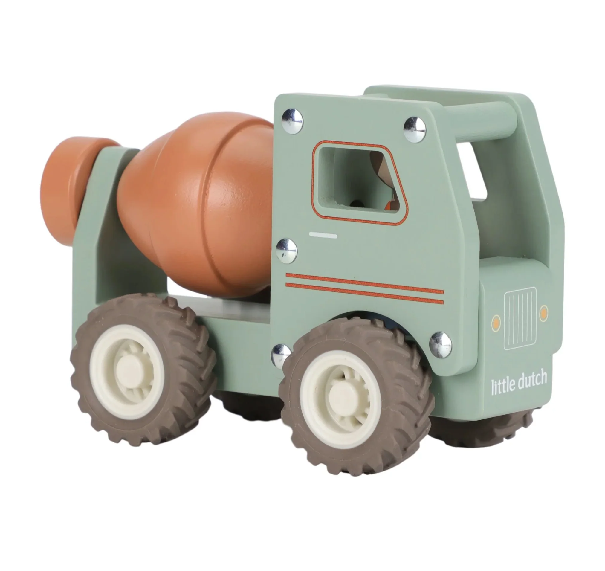 Mélanger et construire ! Ce camion toupie en bois tourne sa bétonnière pendant qu’il roule sur le chantier. Le véhicule est livré avec un ouvrier du bâtiment en bois et dispose de roues en caoutchouc pour un confort de conduite supplémentaire. Conduisez jusqu’au chantier, versez le béton et rendez les routes complètement lisses. Combinez avec la pelle mécanique et le camion-benne en bois pour une expérience de construction complète.