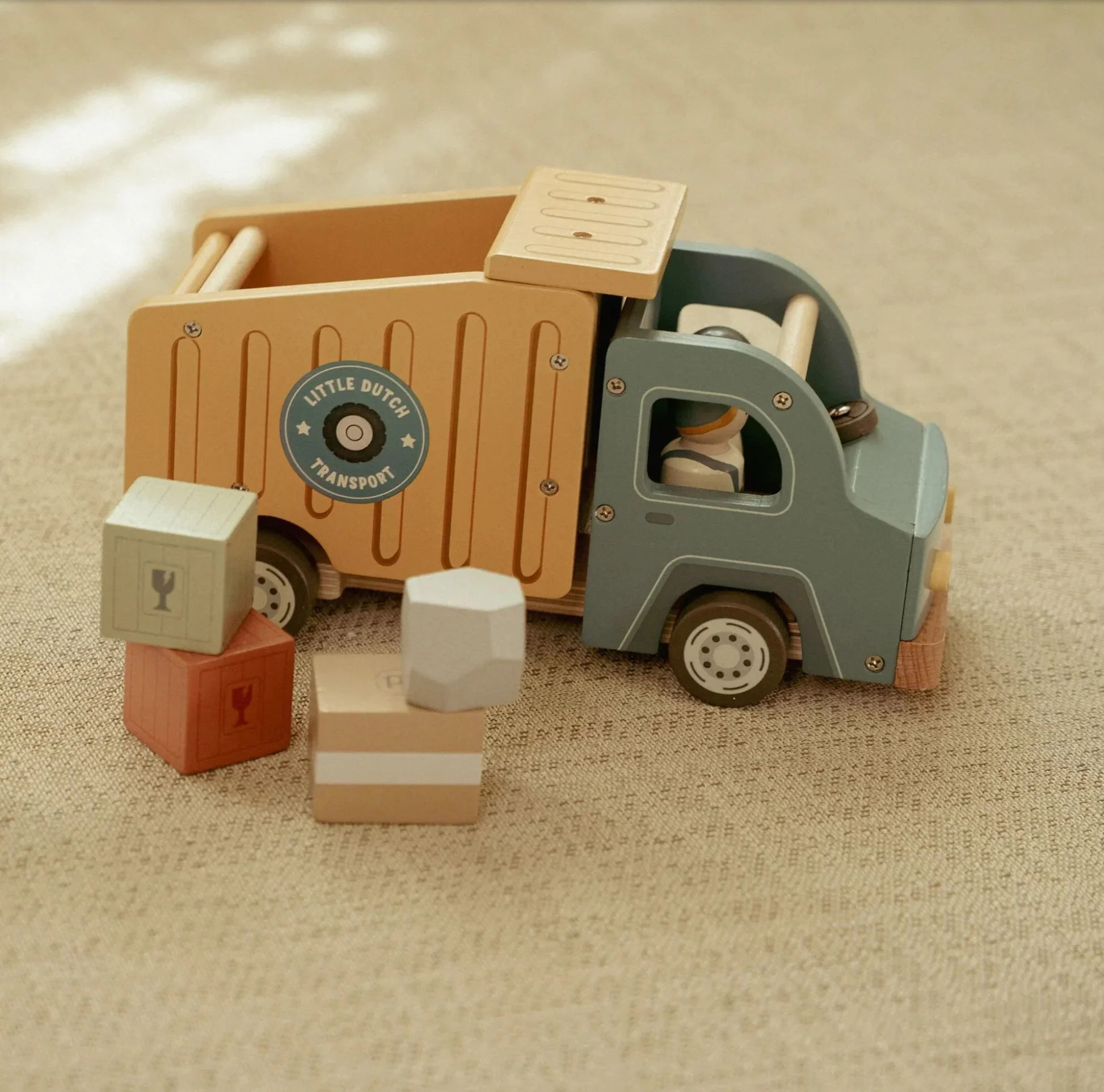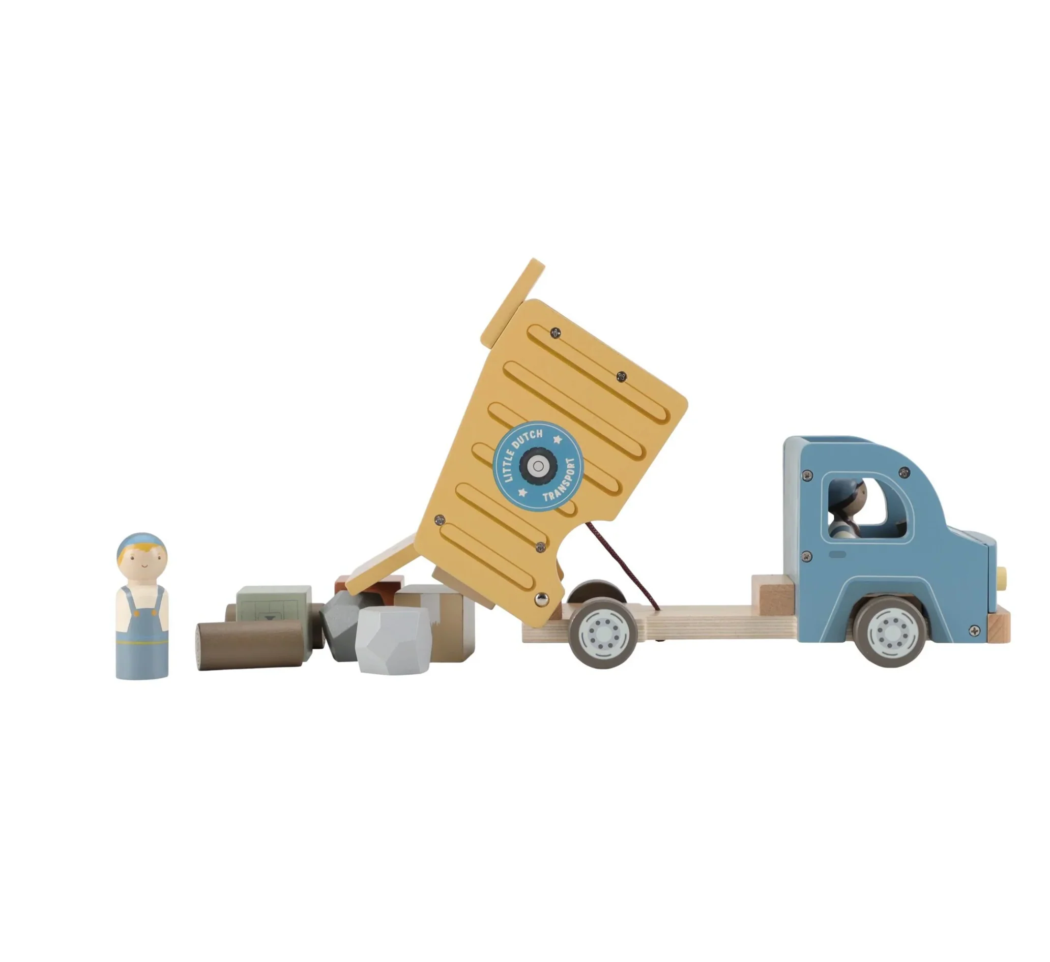 Il est temps de décharger ! Ce camion benne en bois a une benne fonctionnelle et est livré avec deux chauffeurs de camion. Inclus divers chargements tels que des rondins, des pierres et des caisses en bois. Conduisez jusqu’au chantier, inclinez la benne et déversez la cargaison. Ce camion en bois s’accorde parfaitement avec les autres véhicules de construction. Construis-tu une nouvelle ville aujourd’hui ?