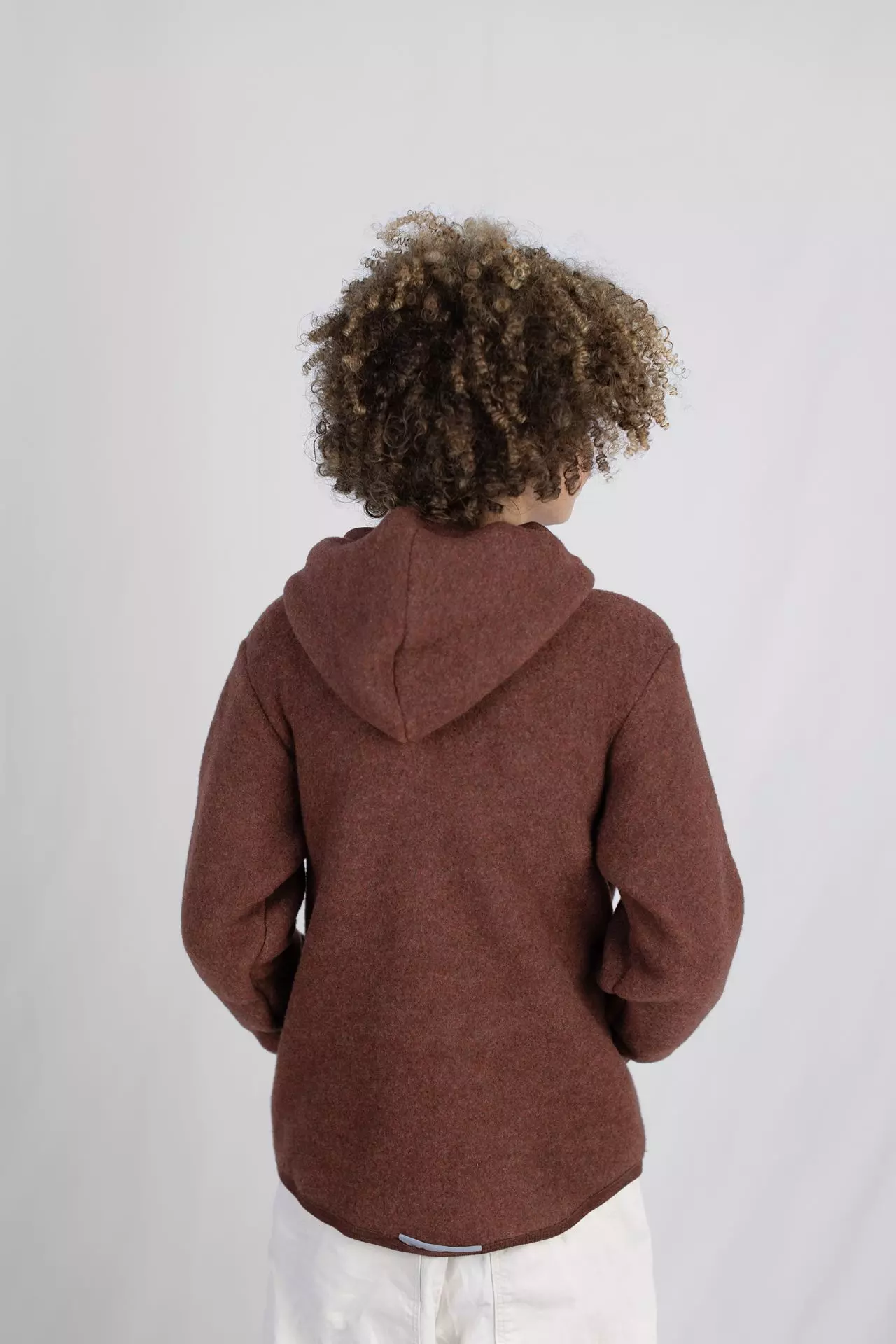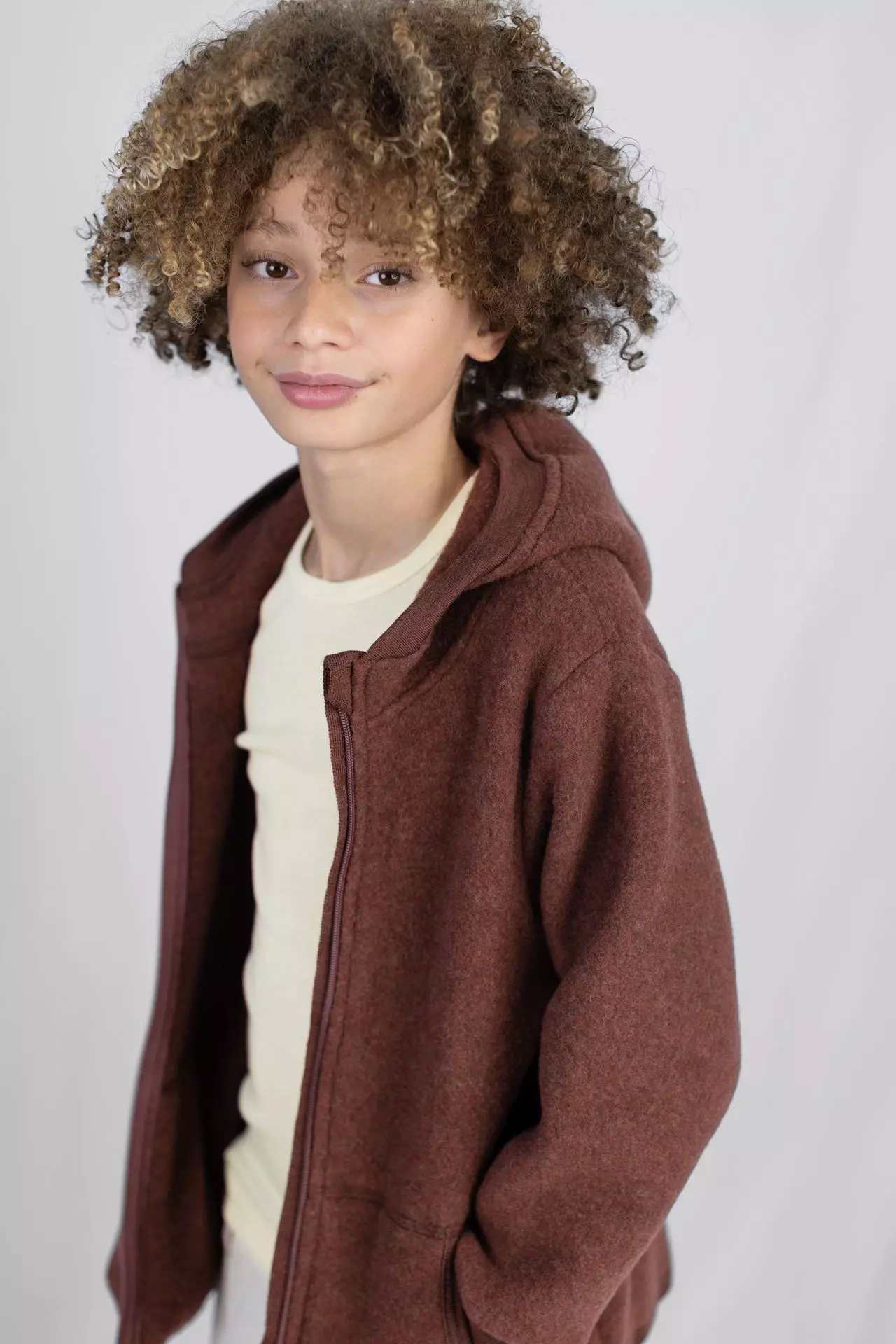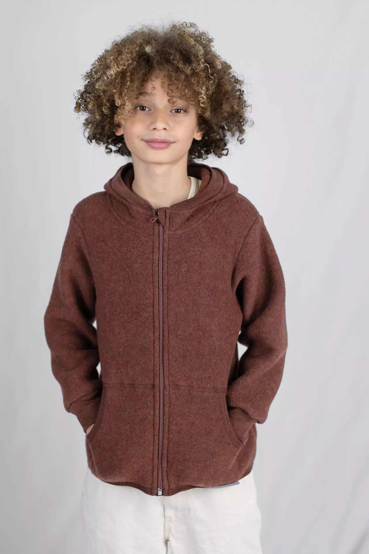Veste à capuche et fermeture éclair en mérinos – Enfant – Cannelle