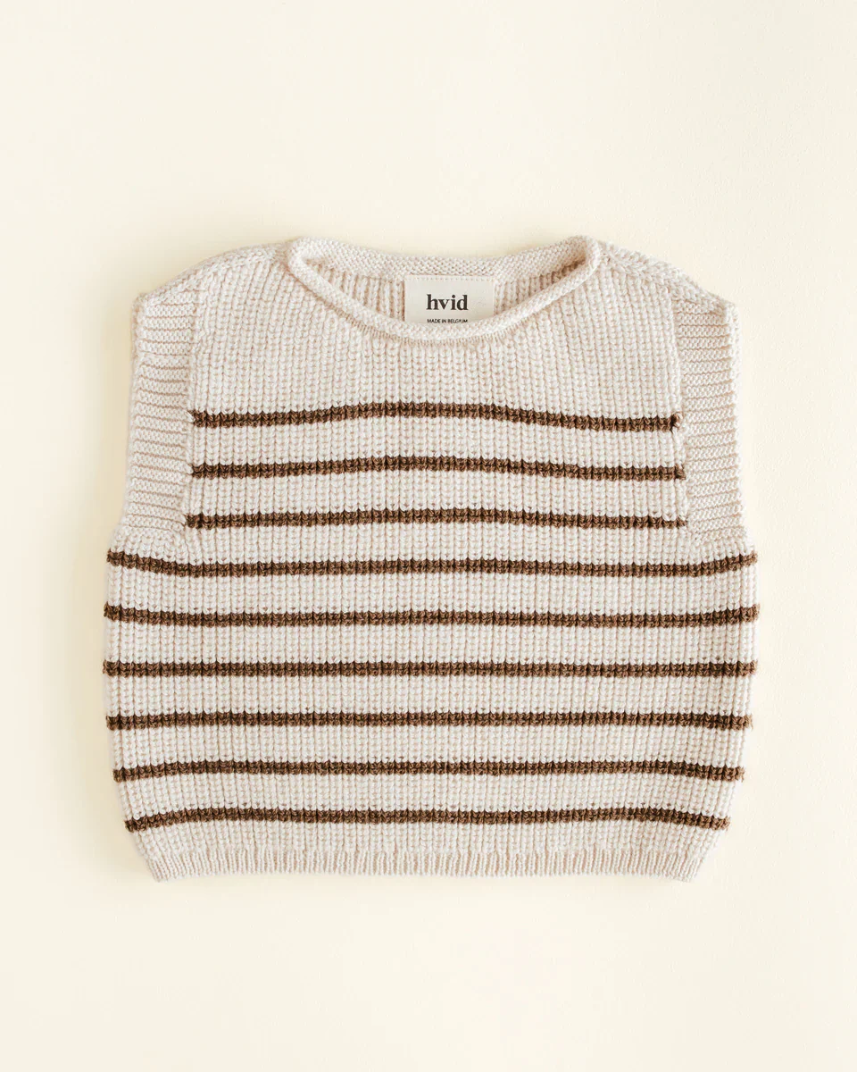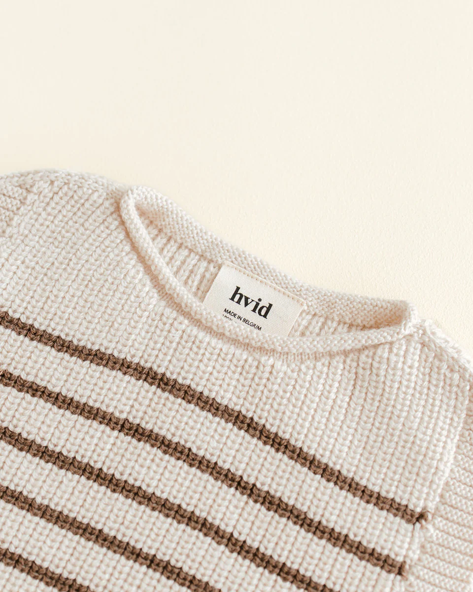 Hvid est né du cœur de la créatrice Caroline Camerlynck dans le désir d’offrir des produits de qualité pouvant être chéris par les familles des années durant. Les précieux textiles Hvid, faits de merinos, sont fabriqués de manière écologique dans un petit atelier familial en Belgique. Hvid signifie blanc en danois: chaque motif que vous tenez près de vous a d’abord été réalisé en blanc pur pour ensuite être teints avec des teintures naturelles. Ce procédé permet de créer des tricots au design impeccable et luxuriant incroyablement douillets.