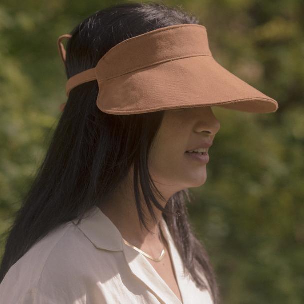 Une visière de coton qui s’attache à l’aide de cordons, pour ajuster à la perfection et utiliser au fil des ans!